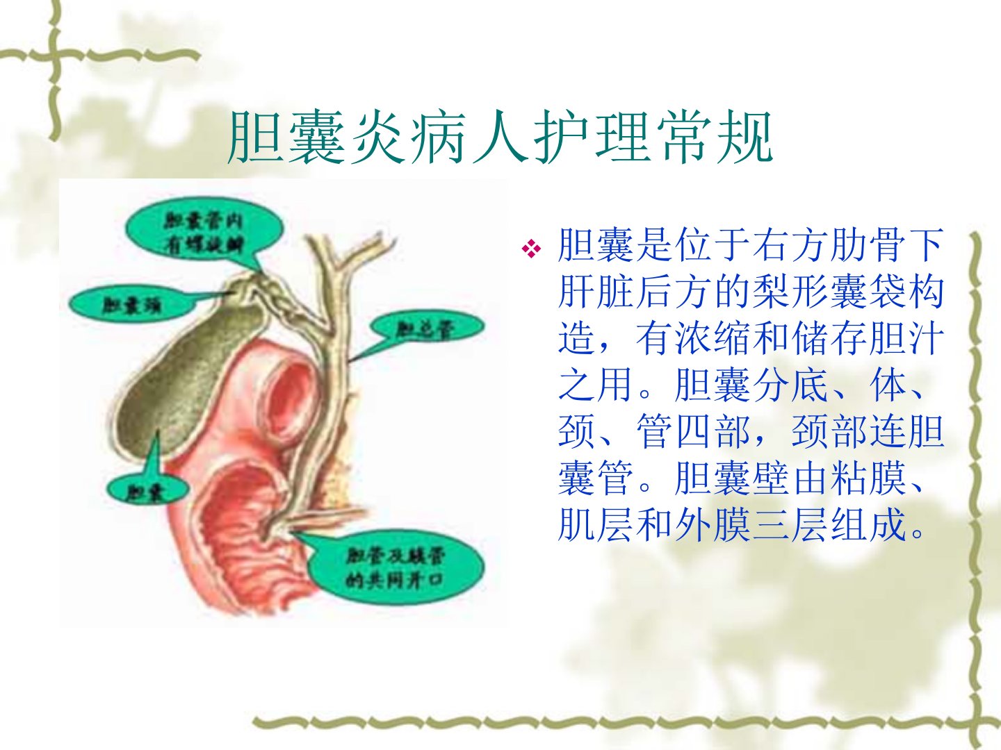 作为医生针对胆囊相关疾病治疗与护理要点总结如下:适应症涵盖有症状的胆囊结石、慢性胆囊炎直径或充满型胆囊结石有症状且具手术指征的胆囊隆起性病变以及急性胆囊炎治疗后症状缓解有手术指征者。护理方面术前需密切观察患者生命体征、腹部体征、皮肤巩膜情况、小便性状及实验室指标做好皮肤、胃肠道准备并进行心理护理耐心解释消除患者顾虑。术后继续观察生命体征保持呼吸道通畅妥善固定并护理引流管关注疼痛情况观察黄疸消退、尿量性状做好口腔及饮食护理逐步恢复饮食。健康教育方面指导患者保持伤口清洁学会T形管自我护理并定期复查饮食宜低脂低胆固醇起居规律避免过度劳累和情绪激动按医嘱使用利胆药出现异常及时就医出院后定期返院检查。