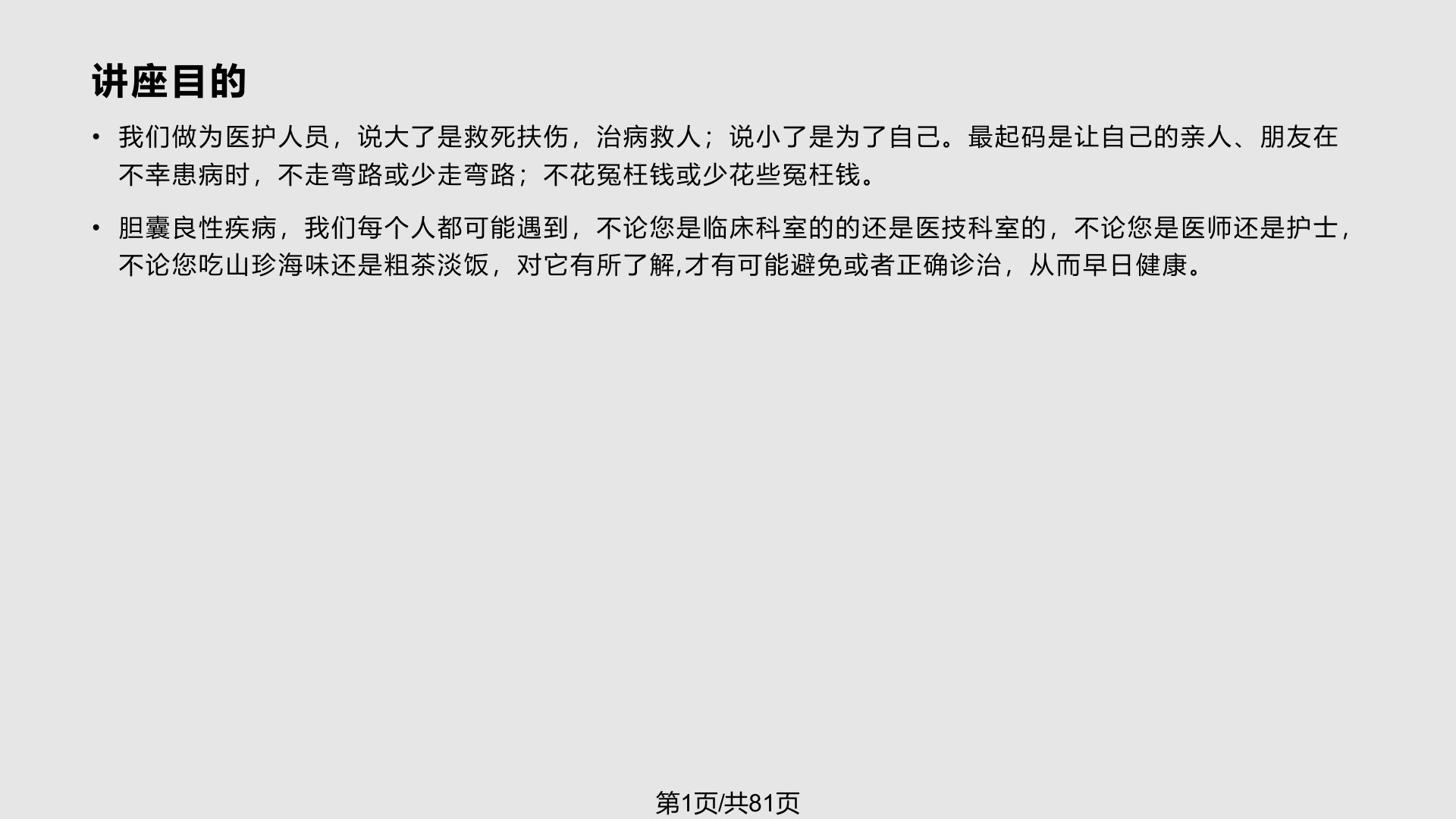作为医护人员应了解胆囊良性疾病的相关知识避免误诊误治帮助自己和亲友在患病时少走弯路、少花冤枉钱。胆道系统包括肝内、肝外胆管、胆囊及Oddi括约肌等部分胆囊位于肝脏下面具有储存、浓缩、分泌粘液和排空胆汁的功能。胆囊良性疾病包括胆囊结石、胆囊炎、胆囊息肉等多为胆固醇或以胆固醇为主的混合结石发病率随年龄增长而增高女性、肥胖者、饮食不健康者及某些疾病患者更易患胆囊结石。胆囊炎依炎症程度分为单纯性、化脓性、坏疽性和胆囊穿孔几种多发生于中年人尤其是中年肥胖女性。胆囊息肉在病理上可分为肿瘤性和非肿瘤性息肉B超检查是诊断胆囊息肉的主要方法。治疗方面包括开腹胆囊切除术、口服药物溶石、腹腔镜胆囊切除等多种方式应根据患者具体情况选择最合适的治疗方法。此外胆囊切除后应注意饮食预防并发症。
