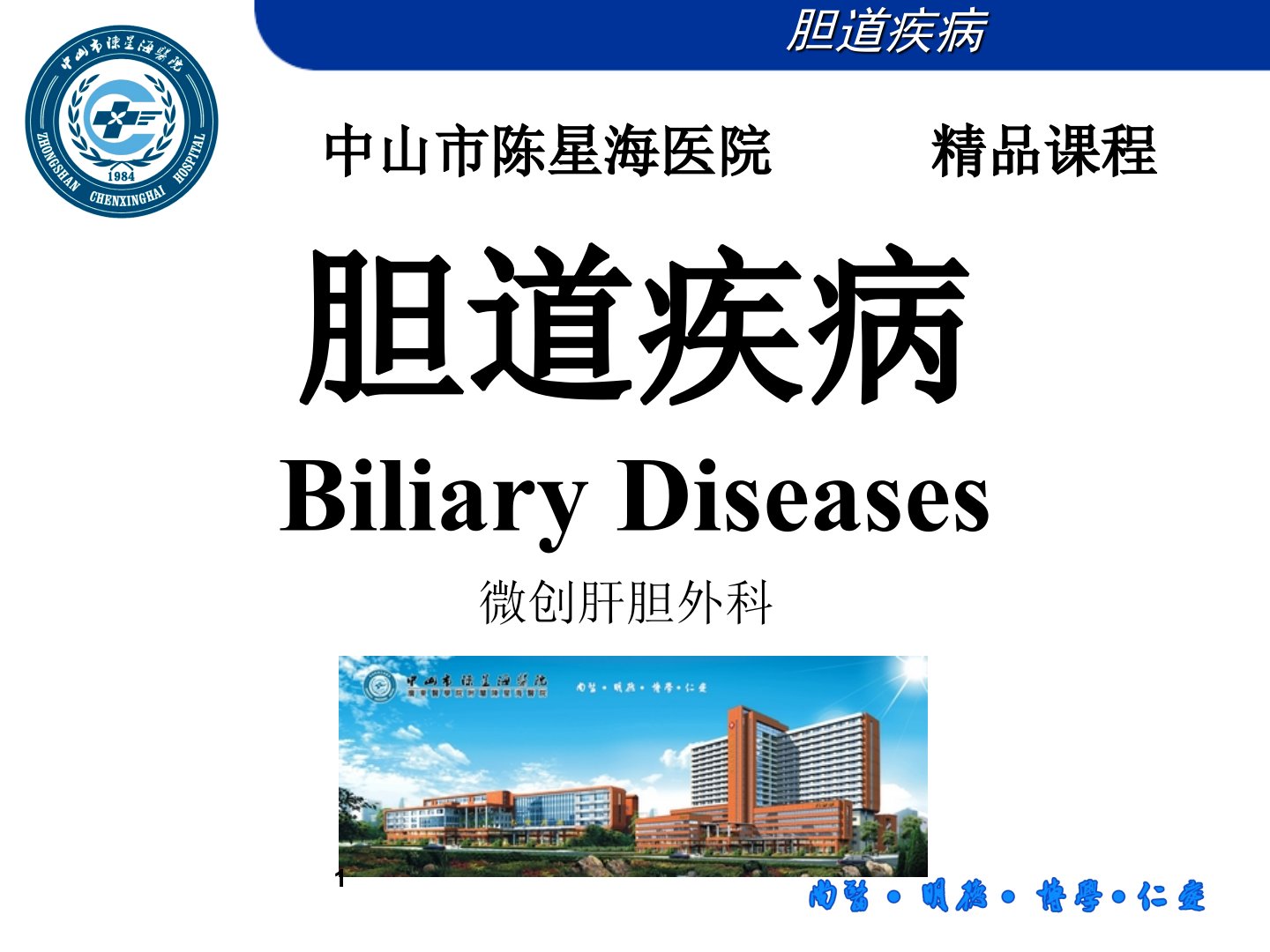 《胆道疾病BiliaryDiseases》摘要本课程为中山市陈星海医院精品课程聚焦微创肝胆外科内容涵盖胆道疾病多方面知识。教学大纲要求掌握胆囊结石、肝外胆管结石、急性胆囊炎、急性梗阻性化脓性胆管炎的临床表现、诊断和治疗原则;熟悉胆道系统特殊检查方法及临床意义;了解慢性胆囊炎、胆囊息肉样病变、胆囊癌、胆管癌、成人先天性胆管囊状扩张症、肝内胆管结石、胆道蛔虫病的临床特点和治疗原则。课程首先介绍了胆道系统解剖生理包括肝内、外胆管结构胆囊及胆囊三角以及胆汁生成、分泌、代谢和胆囊、胆管生理功能。随后讲解了特殊诊断方法超声诊断是首选CT、MRI及MRCP准确性较高PTC及PTBD可诊断治疗ERCP属功能性检查胆道闪烁成像和胆道镜检查也有重要价值。胆石症部分阐述了胆结石分类、胆囊结石和肝外胆管结石临床表现、诊断及治疗治疗包括手术、其他疗法及无症状性胆囊结石处理。胆道感染部分介绍了分类、急性胆囊炎病因病理、临床表现、诊断治疗以及急性梗阻性化脓性胆管炎病因病理、临床表现、诊断治疗。最后还介绍了胆道肿瘤包括胆囊癌和胆管癌的临床表现、诊断和治疗。