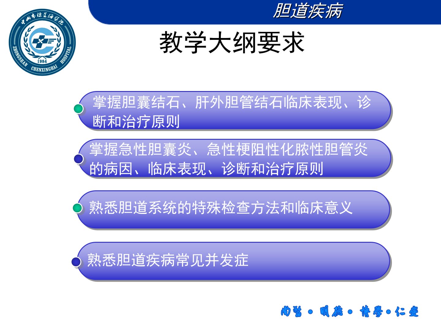 胆道疾病微创肝胆外科掌握胆囊结石、肝外胆管结石临床表现、诊断和治疗原则教学大纲要求掌握急性胆囊炎、急性梗阻性化脓性胆管炎的病因、临床表现、诊断和治疗原则熟悉胆道系统的特殊检查方法和临床意义了解慢性胆囊炎的诊断和治疗教学大纲要求了解胆囊息肉样病变、胆囊癌和胆管癌的临床特点和治疗原则了解成人先天性胆管囊状扩张症、肝内胆管结石、胆道蛔虫病的临床特点第一节解剖生理概要一级支:左右肝管二级支:左内叶、左外叶、右前叶及右后叶肝管三级支:各肝段胆管1、肝内胆管左、右肝管长约1.6cm、0.8cm,直径约0.3~0.35cm胆总管长约7~9cm,直径0.6~0.8cm肝总管长约3~4cm,直径约0.5cm2、...