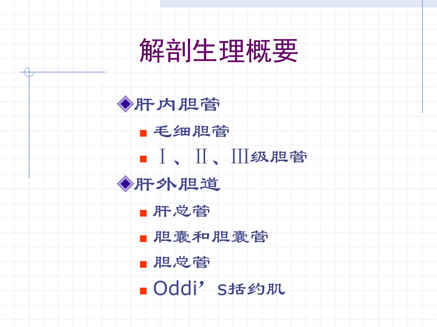 胆道疾病特殊检查法用于诊断胆道结石、鉴别黄疸原因及诊断其他胆道疾病包括手术中B超、腹部平片、间接胆道造影、口服胆囊造影、静脉胆道造影、PTC、ERCP、CT、MRI、MRCP等。胆石症包括胆囊结石(占50)、肝外胆管结石(占2030)和肝内胆管结石(占2030)其形成与微胶粒、泡三角座标糖蛋白基质、胆道动力因素等有关。胆囊结石一般无阳性体征特定情况下可预防性切除首选腹腔镜胆囊切除术。急性梗阻性化脓性胆管炎表现为腹痛、寒战高热、黄疸、低血压及精神症状治疗原则为紧急手术解除胆道梗阻并减压引流。胆道蛔虫病腹痛症状重而体征轻B超和ERCP为首选检查治疗包括非手术和手术方法。胆囊癌多发性在胆囊体部和底部80为腺癌治疗根据Nevin分期选择单纯性胆囊切除术、根治性切除术或姑息性手术。