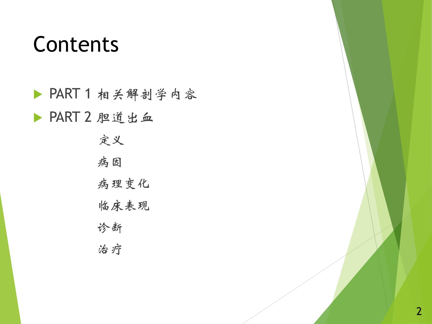 胆道出血(hemobilia)指因损伤或感染等致肝内、外胆管与毗邻血管间形成病理性内瘘血液经胆管流入十二指肠。最早由Glisson于1654年描述1948年Sandblom将其命名为外伤性血胆症居上消化道出血主要病因之一。病因包括胆道感染或结石、损伤(医源性损伤为主)及肝动脉瘤、肝癌等。常见医源性病因包括肝胆管结石伴感染、手术取石暴力操作、胆道镜取石不慎损伤胆管滋养血管等。出血部位肝内胆管占50肝外胆管占25胆囊占25。病理变化包括损伤和炎症炎症多发于汇管区可腐蚀血管分支造成出血。临床表现与出血量及速度有关可出现胆道出血三联征(上消化道出血、胆绞痛、梗阻性黄疸)、休克等症状。诊断方法包括病史询问、肝动脉造影、内镜检查、B超、CT、MRI及胆道探查。治疗包括非手术治疗(输血、补液、止血、抗休克、抗感染、维持胆道引流通畅)和手术治疗(放射介入法行肝动脉栓塞术、胆总管探查T形管引流术、肝叶动脉固有动脉结扎、肝叶段切除、胆囊切除)。
