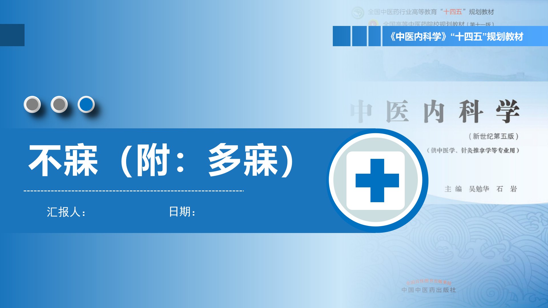 不寐(附:多寐)一、不寐概述1.核心定义:以经常不能获得正常睡眠为主症的疾病,表现为睡眠时间/深度不足——轻者入睡困难、寐而不酣、时寐时醒、醒后难再寐,重者彻夜不寐。2.西医范畴:神经官能症、更年期综合征、慢性消化不良、贫血、动脉粥样硬化症等以不寐为主要表现者,可参照本节辨证论治。神经官能症定义:一组表现为焦虑、恐惧、疑病等的精神障碍症状:疾病类型不同,表现出不同症状治疗:心理治疗和药物治疗预后:规范治疗后能有效缓解病情,但容易复发更年期综合征定义:因女性体内雌激素水平波动引发的综合症状症状:潮热盗汗、情绪波动、睡眠障碍等变化治疗:心理治疗、生活管理及激素补充治疗等预后:完全进入绝经期后症状可...