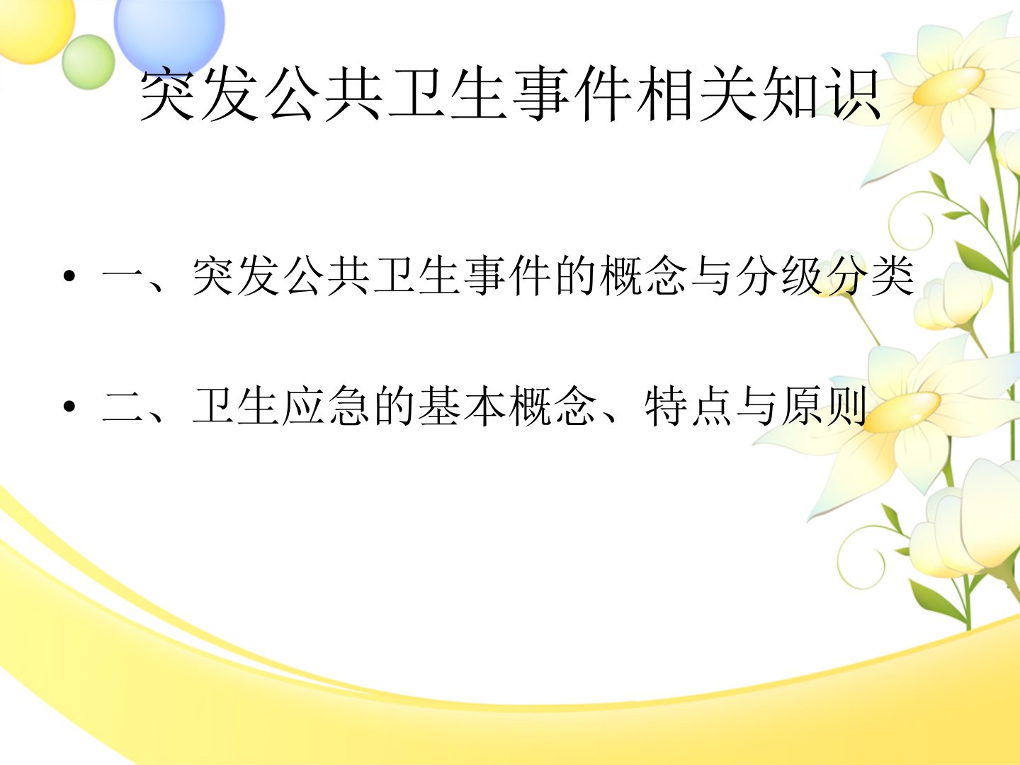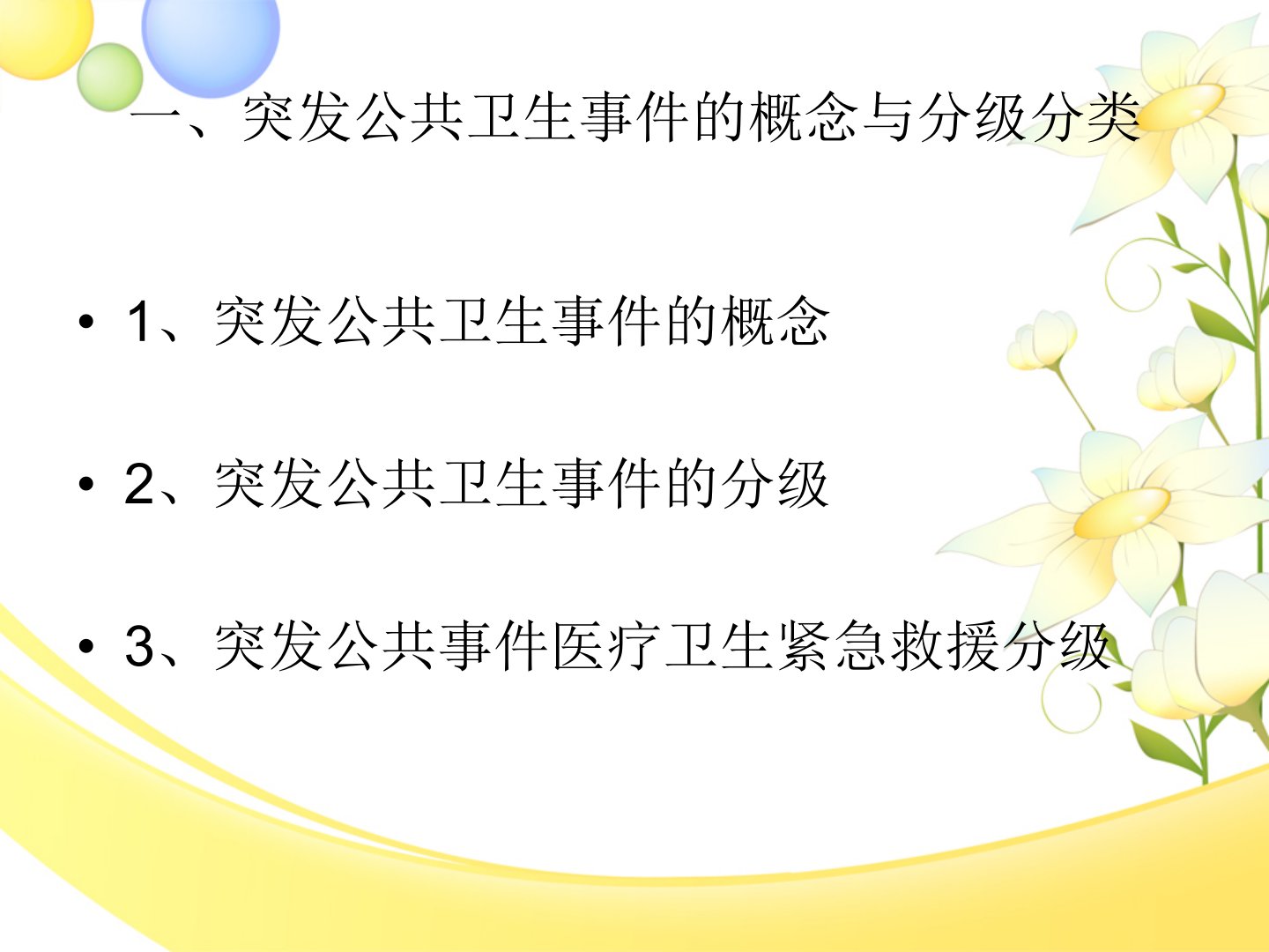 兰溪市梅江镇中心卫生院:突发公共卫生事件相关知识摘要本文介绍了突发公共卫生事件的概念、分级分类及卫生应急的基本概念、特点与原则。突发公共卫生事件分为特别重大(I级)、重大(II级)、较大(III级)、一般(IV级)四级。I级事件包括肺鼠疫等在大城市扩散、新传染病传入扩散等;II级事件有县市内肺鼠疫病例超5例、疑似非典等;III级事件如县市内肺鼠疫病例未超5例等;IV级事件包括腺鼠疫在一个县市内发生一个平均潜伏期内病例数未超过10例等。同时文章阐述了医疗卫生紧急救援分级IIV级分别对应不同伤亡规模及影响程度的事件。卫生应急指事前事后采取措施预防控制事件减少危害。其特点包括首要目标为预防事件发生、符合国情并借鉴国外经验、机制建设长期且需硬件与人员并重、依法开展。原则有统一领导分级负责、全面响应保障健康、依法规范措施果断、依靠科学加强合作。