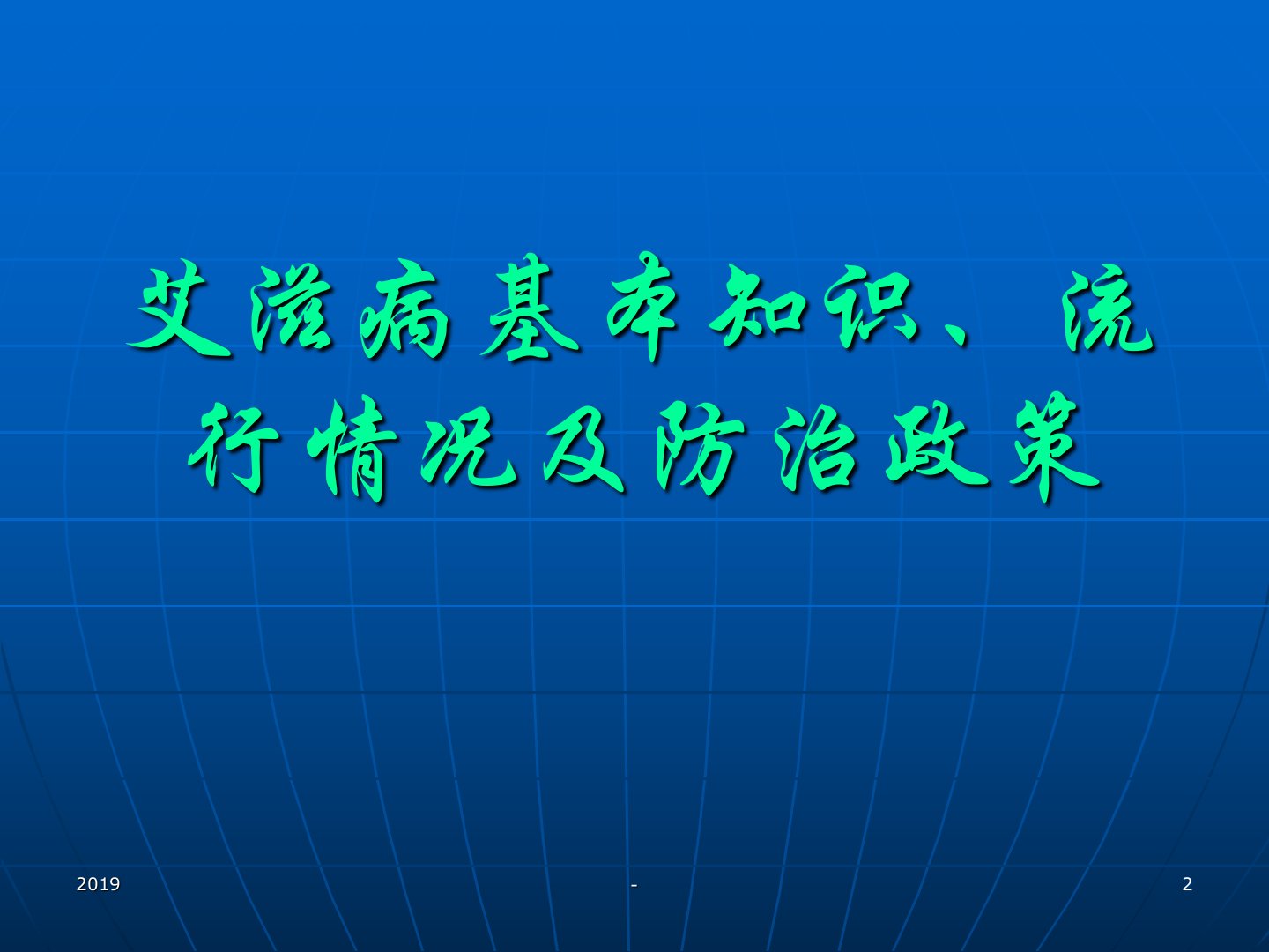 防治艾滋病知识宣讲2019-艾滋病基本知识、流行情况及防治政策2019-第一部分艾滋病的基本知识2019-艾滋病的定义艾滋病的全称为获得性免疫缺陷综合征获得性——后天得到的,而不是遗传的免疫缺陷——人体的免疫系统严重受损综合征——患者多个系统受到损害2019-艾滋病病毒HIV可分为两个型:HIV-1型(1983)和HIV-2型(1985)。HIV-l是世界流行型;HIV-2型呈地区性流行,主要在西非。两型的核酸序列有40-50%是相同的。HIV-2型与HIV-1型相比,致病力较低、传播较慢、潜伏期较长。我国主要流行HIV-1型,1998年报告了首例HIV-2感染病例。2019-几个基本概念:艾...