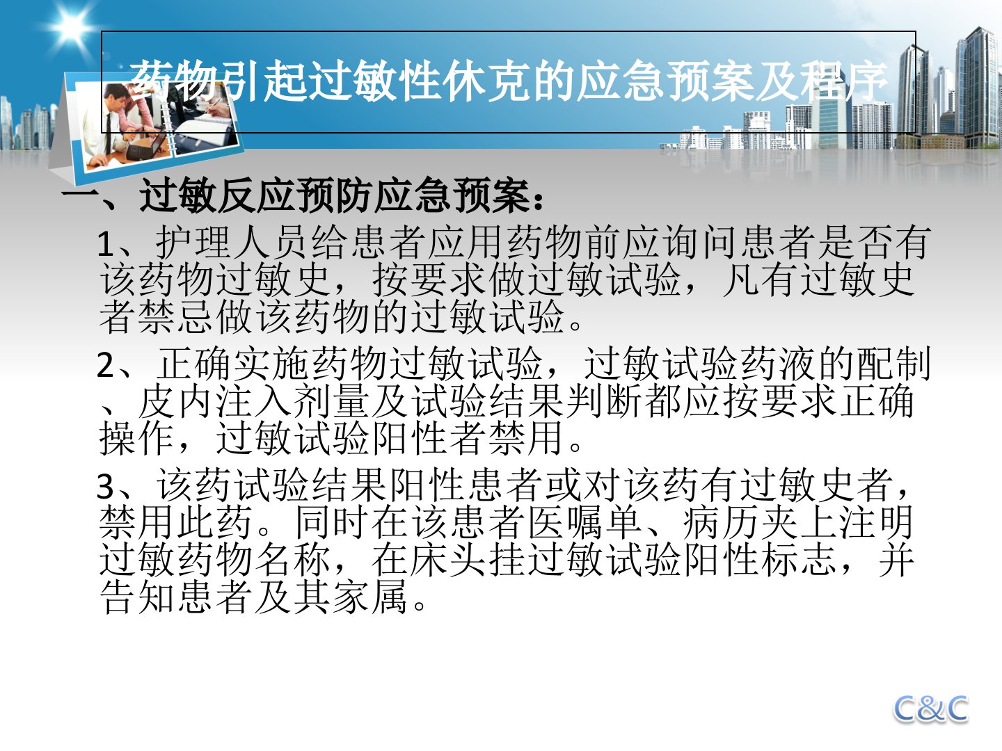 主要内容医嘱查对制度化疗药物的应急预案药物过敏反应应急预案医嘱查对制度1、医嘱应做到班班查对、每日总对,包括医嘱单、执行卡、各种标识(饮食、护理级别、过敏、隔离等),设总查对登记本。单线班处理的医嘱,由下一班负责查对。2、各项医嘱处理后,应核对并签名。3、临时执行的医嘱,需经第二人查对无误后方可执行,记录执行时间,执行者签名。4、抢救患者时医师下达的口头医嘱,执行者须大声复述一遍,经医师核实无误后方可执行;抢救完毕,医师补开医嘱并签名;安瓿留于抢救后再次核对。药物引起过敏性休克的应急预案及程序一、过敏反应预防应急预案:1、护理人员给患者应用药物前应询问患者是否有该药物过敏史,按要求做过敏试验,...