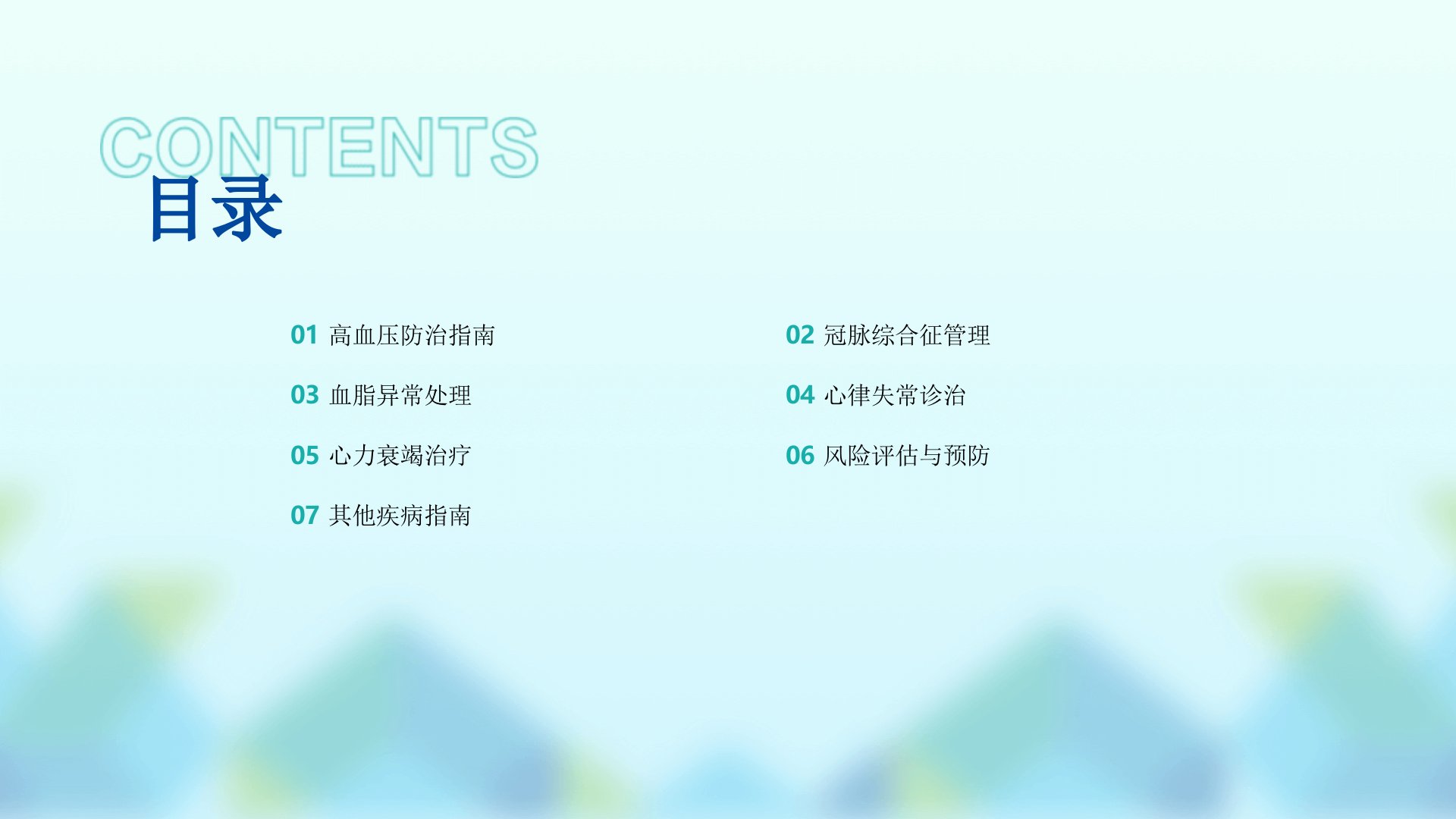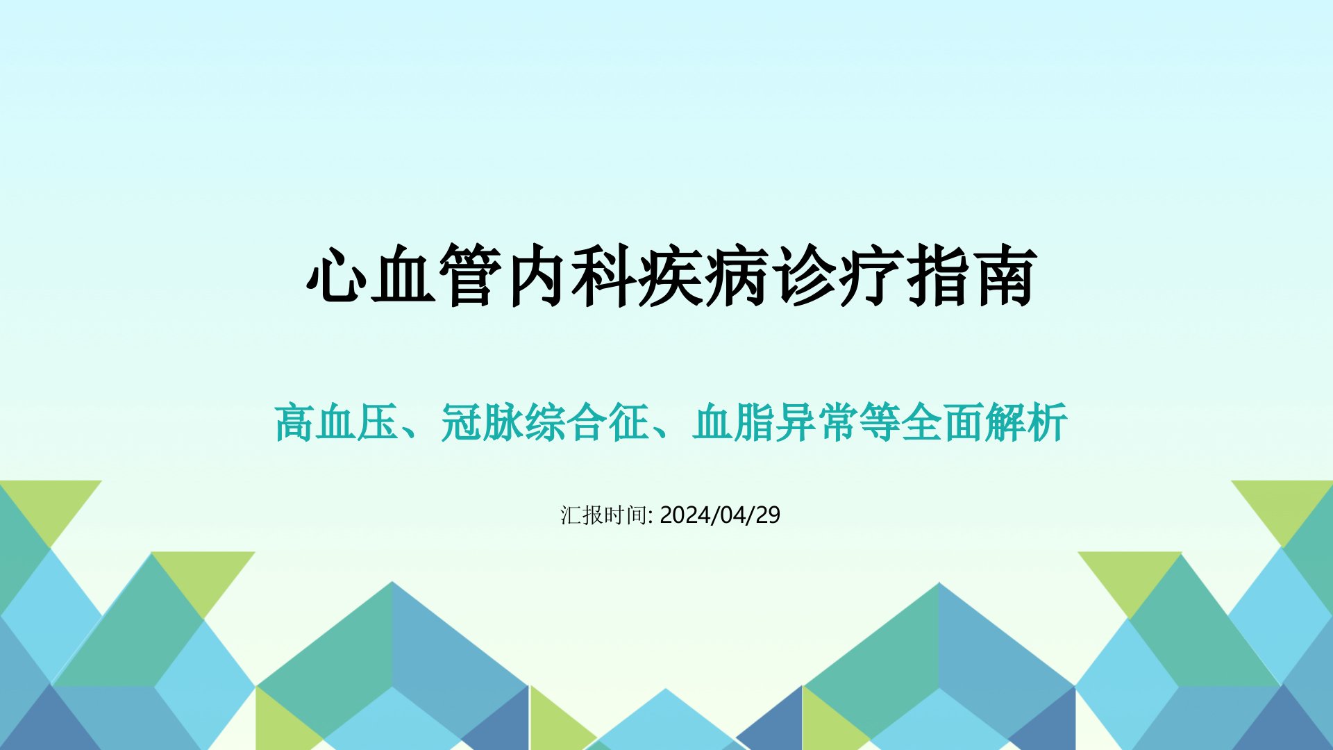在2024年心血管内科疾病诊疗指南汇报中重点解析了高血压、冠脉综合征、血脂异常等疾病的诊疗策略。高血压防治方面依据《中国高血压防治指南2018年修订版》等提供了具有中国特色的预防和管理方案包括特定人群的个性化治疗和基层诊疗指南。冠脉综合征管理方面引入了慢性冠脉综合征新概念强调病情动态变化并提供了ACS急诊处理流程和风险评估方法。血脂异常处理方面详细介绍了血脂代谢异常与动脉粥样硬化的关系特别是低密度脂蛋白胆固醇的管理以及AS患者甘油三酯管理的具体建议。此外还涵盖了心律失常诊治、心力衰竭治疗、心血管病风险评估与预防等内容为临床医生提供了全面、科学的疾病管理和治疗指导。