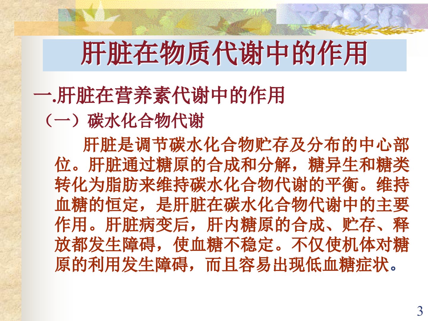 柯杰兵博士探讨了肝硬化的营养治疗。肝脏是营养素代谢的主要器官肝硬化会影响营养代谢因此营养治疗十分重要。在营养素代谢方面肝脏在碳水化合物、脂类、蛋白质和氨基酸以及微量营养素(维生素和微量元素)的代谢中均发挥关键作用。肝硬化时这些代谢过程受阻会导致一系列症状和疾病。营养治疗原则包括:1控制热能防止脂肪合成过多;2提高蛋白质供给促进肝细胞修复;3减少碳水化合物摄入避免肥胖;4适量脂肪摄入选择不饱和脂肪酸;5保证微量营养素防止缺乏;6低钠高钾饮食限制钠摄入;7烹调方法多样食物质地细软。肝性脑病的营养治疗重点是防止血氨增高通过控制蛋白质摄入、供给足够热能和碳水化合物、低脂肪、全面补充维生素等措施实现。