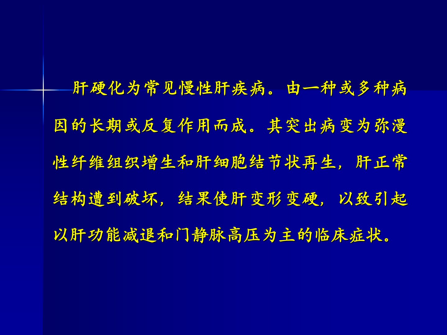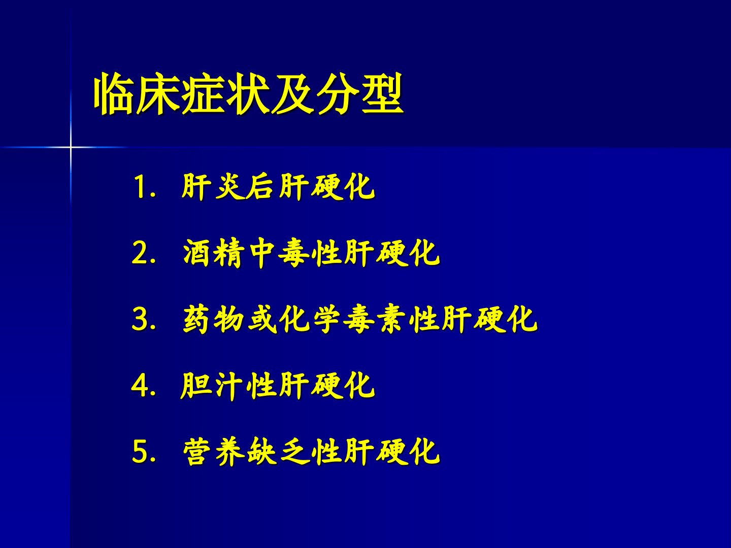 肝硬化是常见慢性肝病由多种病因长期作用导致肝脏纤维化、变形变硬引发肝功能减退和门静脉高压等症状。其类型包括肝炎后、酒精中毒性、药物或化学毒素性、胆汁性和营养缺乏性肝硬化。临床表现上早期症状轻中后期明显后期可发生各种严重并发症。肝硬化病人中约八成存在营养不良与肝病严重程度密切相关。营养不良原因包括摄入减少、消化不良或吸收不良、肝脏代谢改变。营养治疗原则是通过饮食增进食欲、改善消化功能、控制病情发展、增强抵抗力、促进肝细胞修复。具体措施包括“三高一适量”饮食即高能量、高蛋白、高维生素、适量脂肪同时注意碳水化合物、钠与水、微量元素的摄入采取少量多餐、科学烹调的方式有静脉曲张者食物制备要细软。患者需严禁饮酒并根据病情调整饮食。
