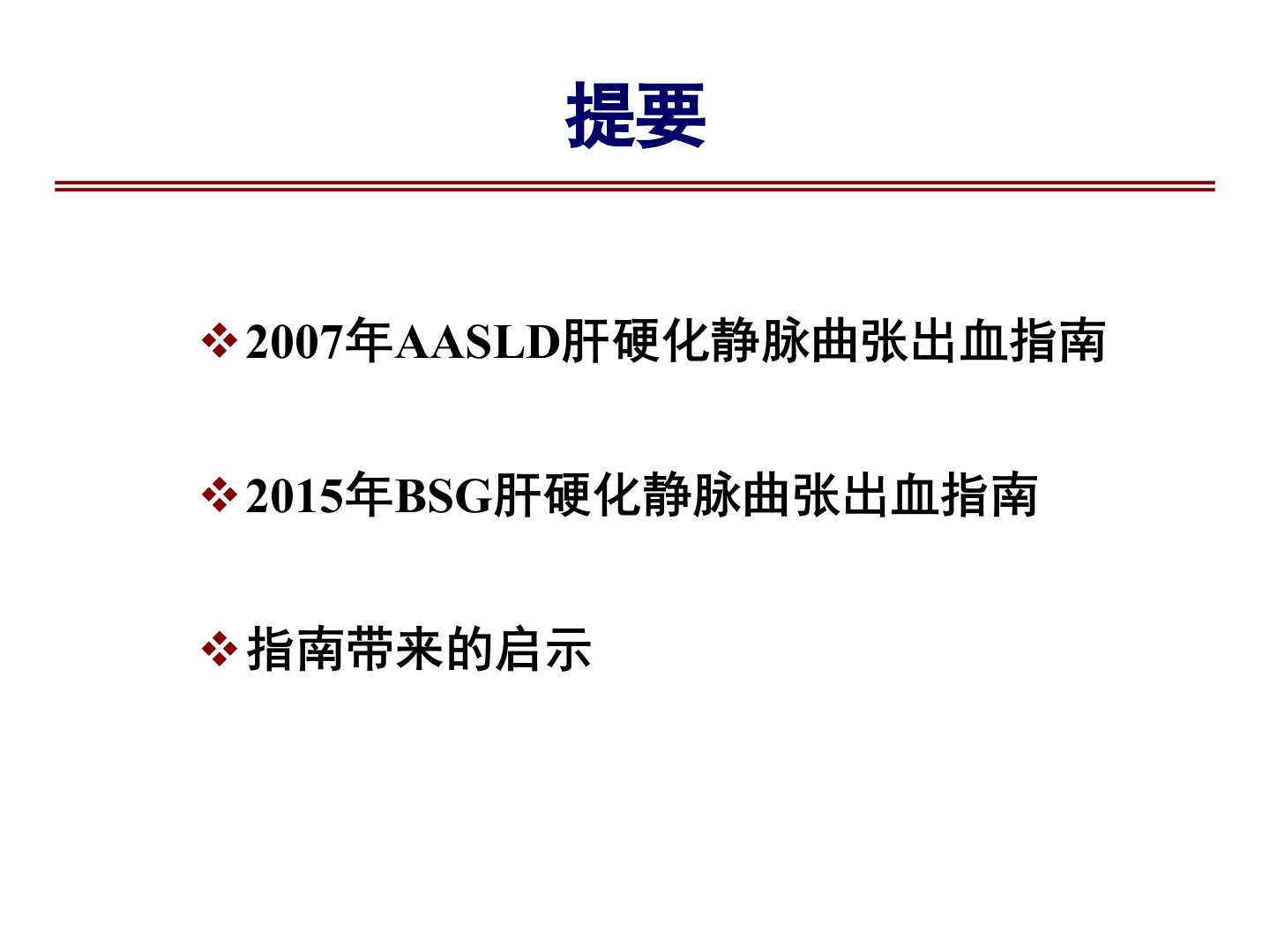 《肝硬化静脉曲张出血的诊疗提要》摘要本文综述了2007年AASLD和2015年BSG发布的肝硬化静脉曲张出血指南要点。2007年AASLD指南强调门脉高压的病理生理指出HVPG升高是静脉曲张出血的重要预测因子。指南建议肝硬化确诊后应行内镜筛查根据静脉曲张大小和风险因素选择预防性治疗如非选择性受体阻滞剂或内镜套扎。急性出血时需重症监护、补液输血、应用抗生素和血管活性药物并在12小时内行内镜治疗。2015年BSG指南一级预防变化不大急性出血时强调凝血管理下调了Hb水平明确了内镜干预时机预防再出血方案更加细化增加了急性胃静脉曲张出血的处理。两版指南均强调结合当地医疗条件制定最优诊疗策略以内镜和套扎为基础不具备内镜治疗的单位需规范用药可临时用球囊压迫并尽快转诊。