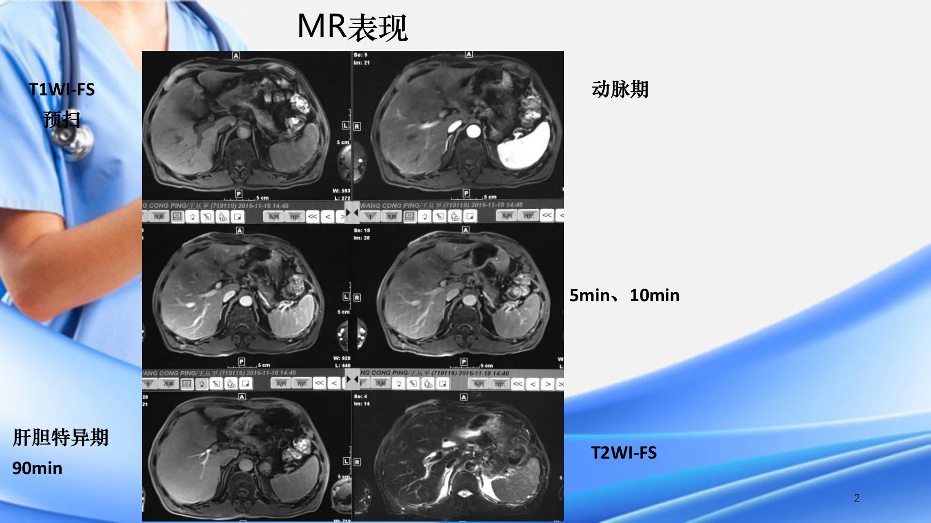 肝脏的MR表现摘要肝脏MR表现涵盖正常与异常情况。正常肝脏在同相位反相位、DWI等序列有特定表现。异常表现包括轮廓大小形态改变信号强度异常分五级。局限性信号改变中实性肿瘤T1WI稍低、T2WI稍高信号含液性肿块T1WI极低、T2WI极高信号T1WI高信号区提示出血或脂肪变性肿块内特定信号变化表示液化或坏死;普遍性信号改变中肝脏普遍性信号增强考虑脂肪肝铁质含量增多信号减低考虑血色素沉着症。常见疾病方面弥漫性病变有肝硬化、脂肪肝脂肪肝MR以同反相位检测最有效;炎性病变如肝脓肿MRI表现具有特征性;良性病变中海绵状血管瘤呈“灯泡征”有特定强化方式局灶性结节增生(FNH)有典型MR表现且具特异性肝腺瘤影像表现缺乏特异性;肝硬化病因多样MRI表现复杂且有多种继发性改变;肝癌(HCC)有多种类型MR表现“快进快出”;肝转移瘤是常见恶性肿瘤多经多种途径转移常为多发。
