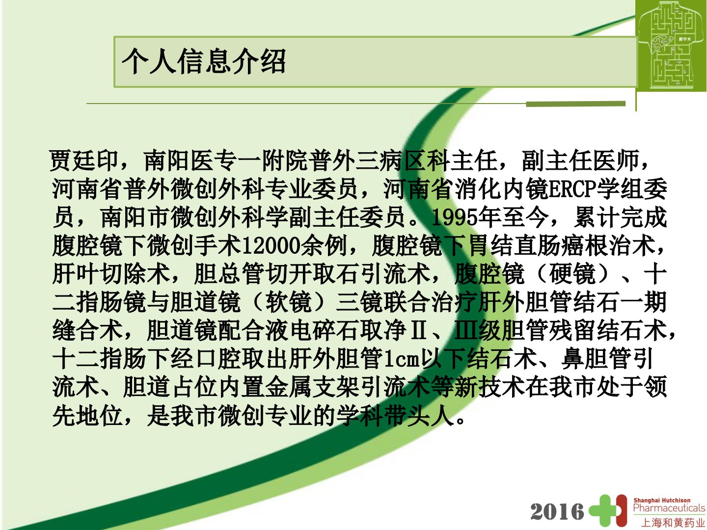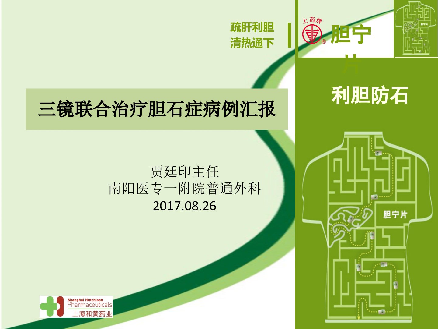 2017年8月26日南阳医专一附院普通外科贾廷印主任(河南省普外微创外科专业委员等)进行了三镜联合治疗胆石症病例汇报。贾廷印主任1995年至今累计完成腹腔镜下微创手术12000余例是我市微创专业的学科带头人。胆石症是外科常见病按部位分为胆囊、肝内胆管、肝外胆管结石约10胆囊结石患者合并胆管结石治疗方案需个体化设计。目前国内大多数医院三镜分属不同科室影响疗效使胆石症微创化治疗面临困境。南阳医专一附院普通外科三病区拥有三镜联合技术已成功治疗上万例患者达到国内先进水平。汇报病例中患者女42岁反复上腹部胀痛不适10年再发伴寒战高热2天诊断为肝内外胆管结石伴急性梗阻性胆管炎、胆囊结石胆囊炎采用三镜联合治疗术后一周出院。三镜联合治疗胆石症具有手术创伤小、恢复快、残石率低、住院时间短、复发率低等优点难点在于需熟练的镜下操作技术和相应的内镜设备。此外胆宁片具有疏肝利胆、清热通下、利胆防石的功效。