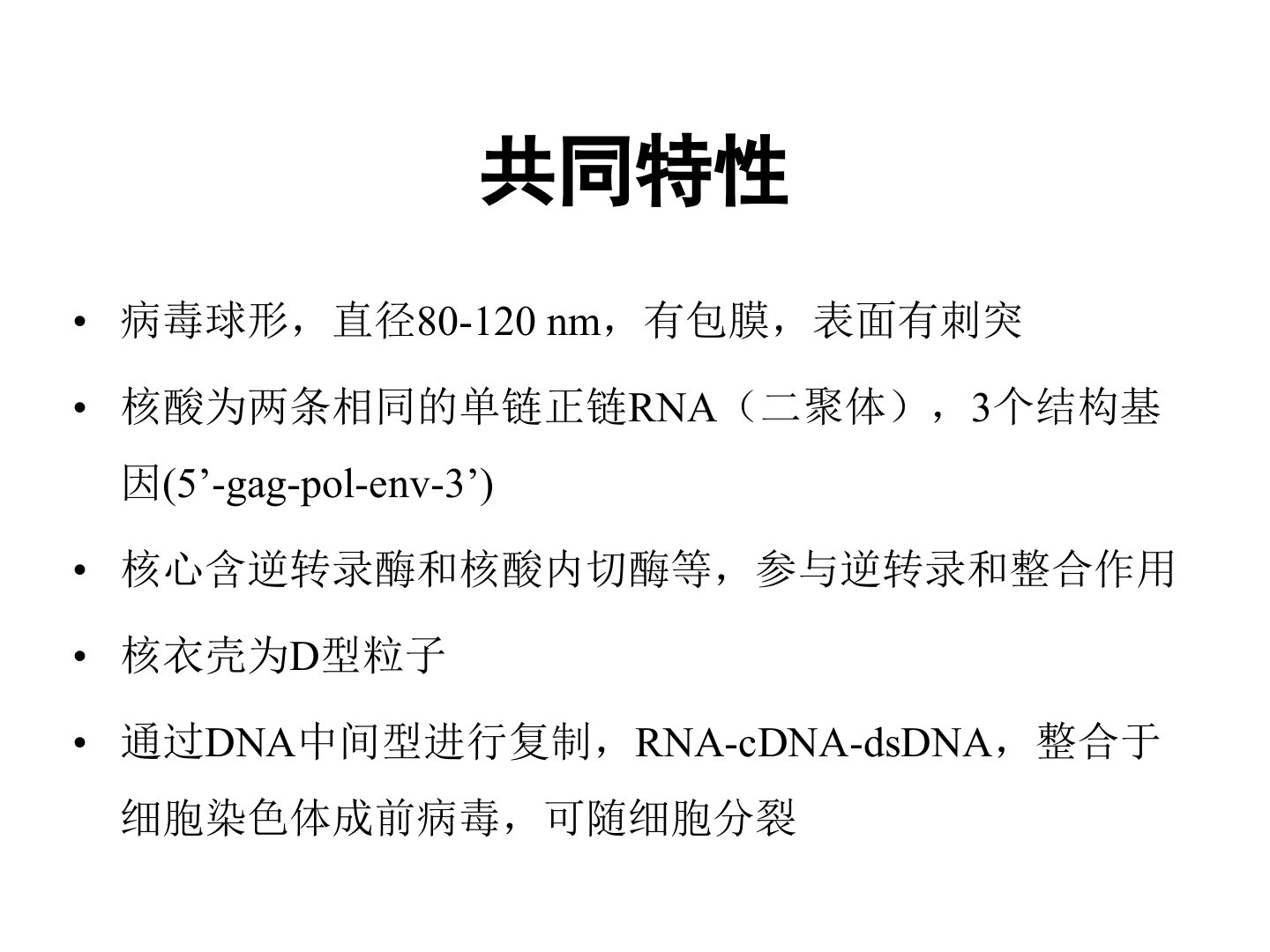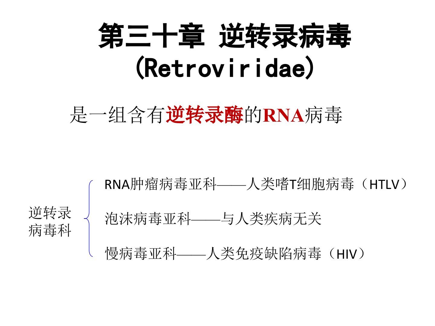第三十章聚焦逆转录病毒其核心特性为含有逆转录酶的RNA病毒形态为球形直径80120nm有包膜和刺突核酸为两条相同单链正链RNA。HIV(人类免疫缺陷病毒)是其中一员导致AIDS(获得性免疫缺陷综合征)。全球艾滋病传播途径多样中国艾滋病流行呈现波及范围广、全国低流行、局部高流行的特点。HIV发现历史可追溯至1981年美国CDC首次报道的不明原因卡氏肺孢虫肺炎病例后于1986年正式命名为HIV并分为HIV1(全球流行)和HIV2(仅非洲流行)两型。HIV生物学特性复杂包括形态结构、生活周期、抵抗力、培养特性及高度变异性。其致病性和免疫性主要体现为选择性地侵犯表达CD4分子的细胞引起严重免疫缺陷。HIV感染分为四期:潜伏期、原发感染急性期、潜伏期、艾滋病相关综合症及艾滋病期机体虽可产生多种抗体和细胞免疫但不足以清除病毒。微生物学检查法包括检测抗体、病毒及其组分、病毒核酸。AIDS防治原则包括预防HIV感染综合措施、疫苗研究和抗病毒治疗目前主要使用核苷类逆转录酶抑制剂、非核苷类逆转录酶抑制剂和蛋白酶抑制剂进行综合治疗。
