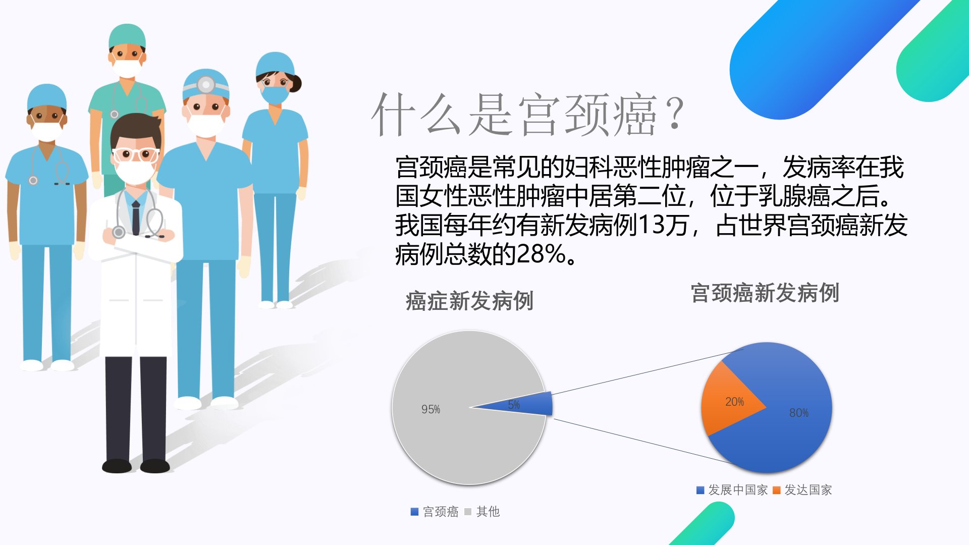 宫颈癌是常见妇科恶性肿瘤在我国女性恶性肿瘤中发病率居第二每年新发病例约13万。持续人乳头瘤病毒(HPV)感染是其主要病因高危型HPV(如16、18型等)可能导致宫颈癌性接触是其最主要的传播途径感染高峰为1830岁。大部分HPV感染可自行清除高危型HPV持续感染才可能引发宫颈癌。不良性行为、经期卫生不良、性传播疾病、吸烟、长期服用口服避孕药、免疫缺陷与抑制、其他病毒感染、社会经济条件差等因素会增加患病风险。预防宫颈癌需定期进行TCT和HPV检查必要时做阴道镜检查。接种HPV疫苗后仍需按常规进行筛查。此外戒烟、注意性接触卫生和安全、戴安全套、定期筛查等也是预防宫颈癌的重要措施。
