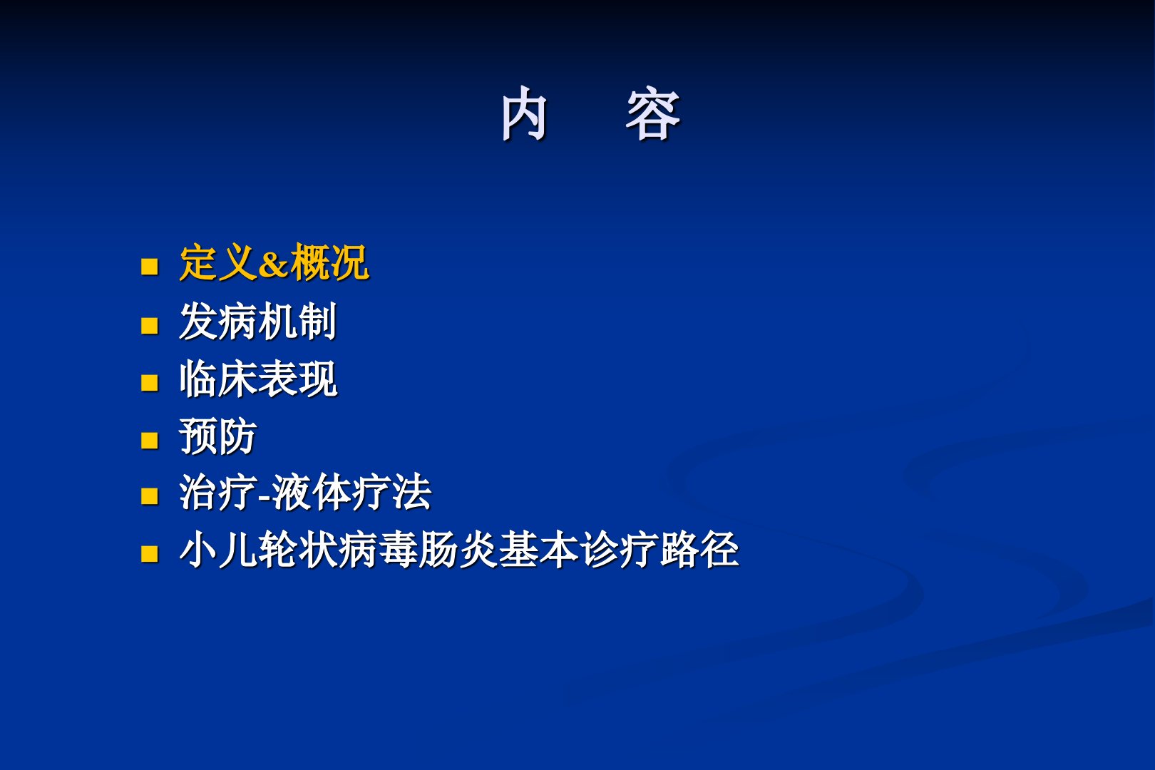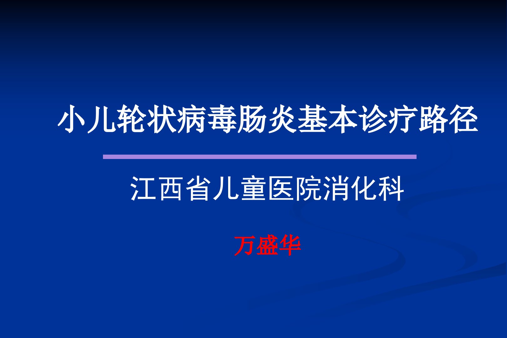 小儿轮状病毒肠炎基本诊疗路径摘要本文由江西省儿童医院消化科万盛华医生介绍小儿轮状病毒肠炎基本诊疗路径。轮状病毒肠炎是秋冬季小儿腹泻最常见病原经粪口或呼吸道感染潜伏期13天多见于624月婴幼儿。其发病机制涉及轮状病毒导致的黏膜损伤和乳糖不耐受。临床表现包括起病急常伴呕吐、腹泻、黄色水样便或蛋花样便还常伴有脱水、酸中毒、电解质紊乱、发热和上呼吸道感染症状病程38天。预防方面注意饮食、环境卫生提倡母乳喂养防治营养不良合理用药接种轮状病毒疫苗。治疗原则包括调整饮食、加强护理、合理用药、纠正和预防脱水及并发症实施消化道和呼吸道隔离。液体疗法遵循“一、二、三、四”基本原则和“三定”原则。此外文件还介绍了轮状病毒肠炎的诊断依据、检查项目、出院标准、双向转诊流程等内容。