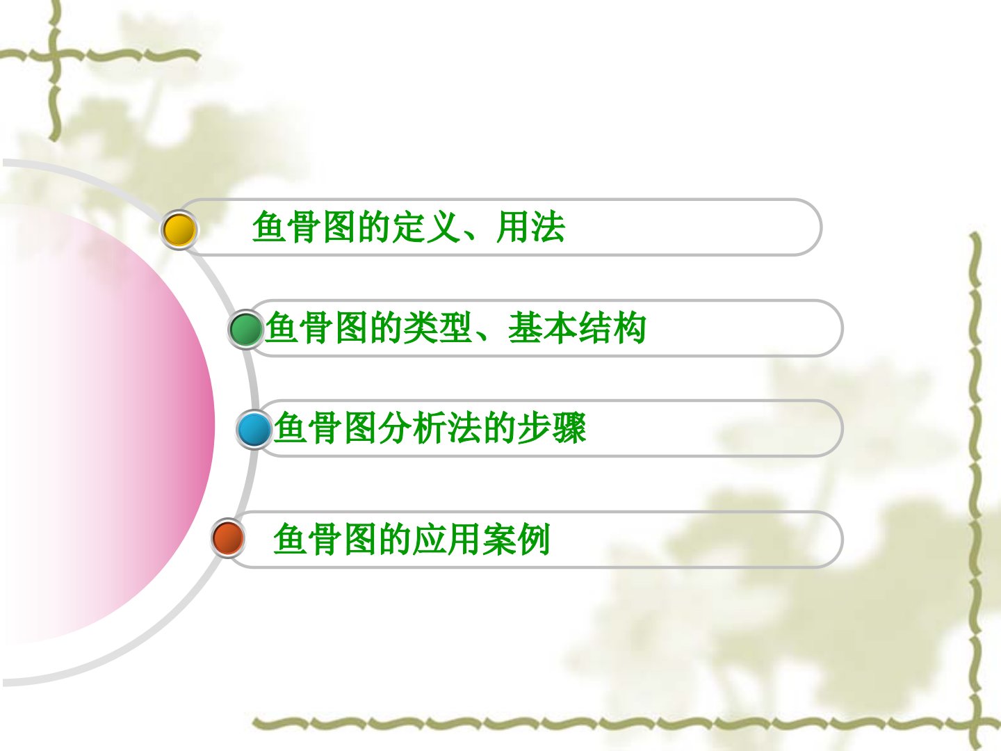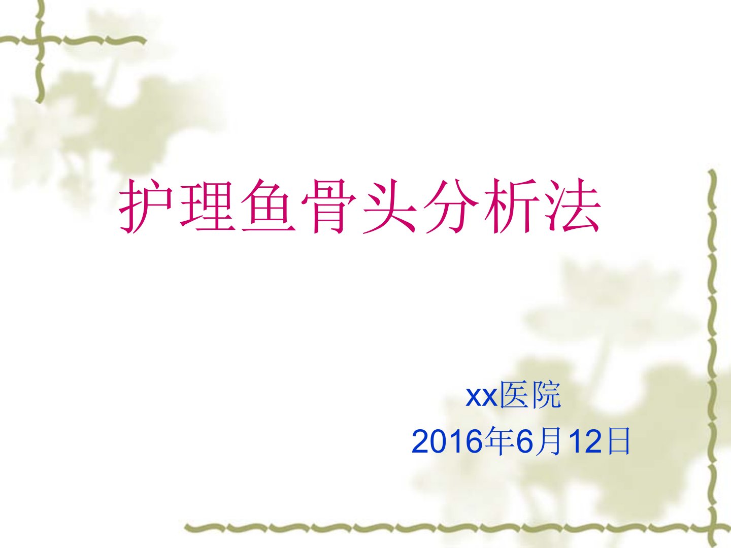 护理鱼骨头分析法摘要本文介绍了xx医院使用的鱼骨头分析法(又称石川图、鱼骨图或鱼刺图)。该方法由日本管理大师石川馨于1953年提出是一种把握结果与原因的有效方法旨在发现问题根本原因。鱼骨图通过头脑风暴法找出影响问题特性的因素并按相互关联性整理成层次分明、条理清楚的图形标出重要因素。鱼骨图类型包括整理问题型和原因型、对策型基本结构由特性、主骨、大骨、中骨、小骨和孙骨构成。绘制步骤包括决定问题特性、绘制主骨和大骨、分类书写要因等强调从事实出发围绕“为什么会那样”层层深究。应用案例涉及管理、认知、行为等多方面因素导致的护理不良事件通过鱼骨图分析可找出根本原因如制度执行不力、责任心欠佳、流程不严格等为采取补救措施提供依据。
