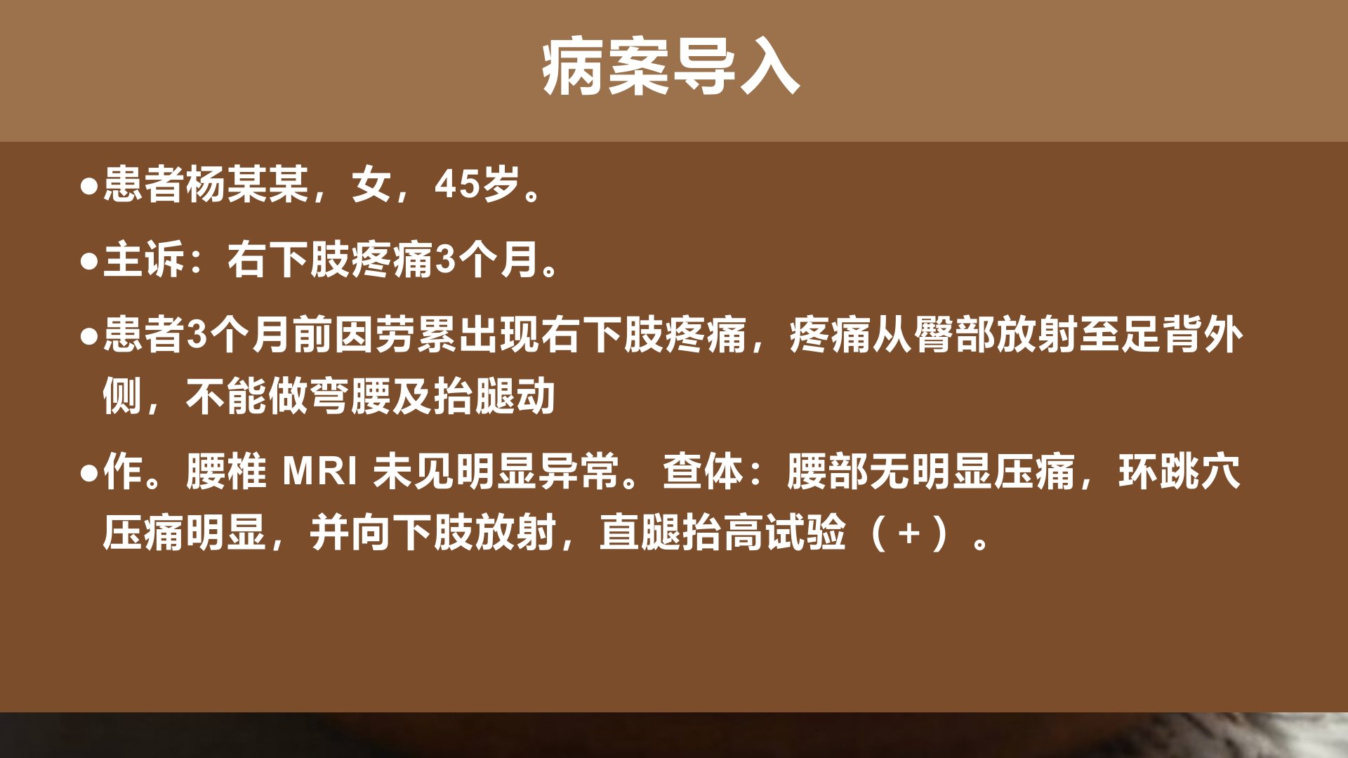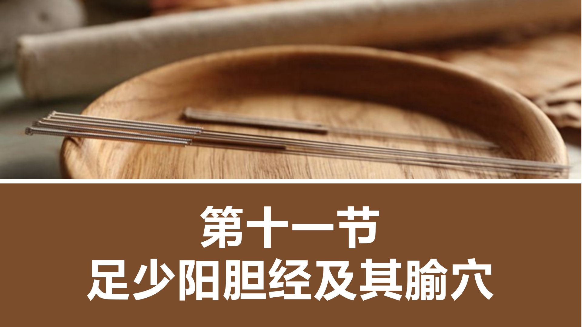 第十一节足少阳胆经及其腧穴病案导入患者杨某某,女,45岁。主诉:右下肢疼痛3个月。患者3个月前因劳累出现右下肢疼痛,疼痛从臀部放射至足背外侧,不能做弯腰及抬腿动作。腰椎MRI未见明显异常。查体:腰部无明显压痛,环跳穴压痛明显,并向下肢放射,直腿抬高试验(+)。一、经脉循行白话文足少阳胆经,起于目外眦,上行额角部,下行至耳后,沿颈项部至肩上,下入缺盆。耳部分支,从耳后进入耳中,出走耳前到目外眦后方。外眦部支脉,从目外眦下走大迎,会合于手少阳经到达目眶下,行经颊车,由颈部下行,与前脉在缺盆部会合,再向下进入胸中,穿过横膈,络肝,属胆,再沿胁肋内下行至腹股沟动脉部,绕外阴部毛际横行入髋关节部。其直行...