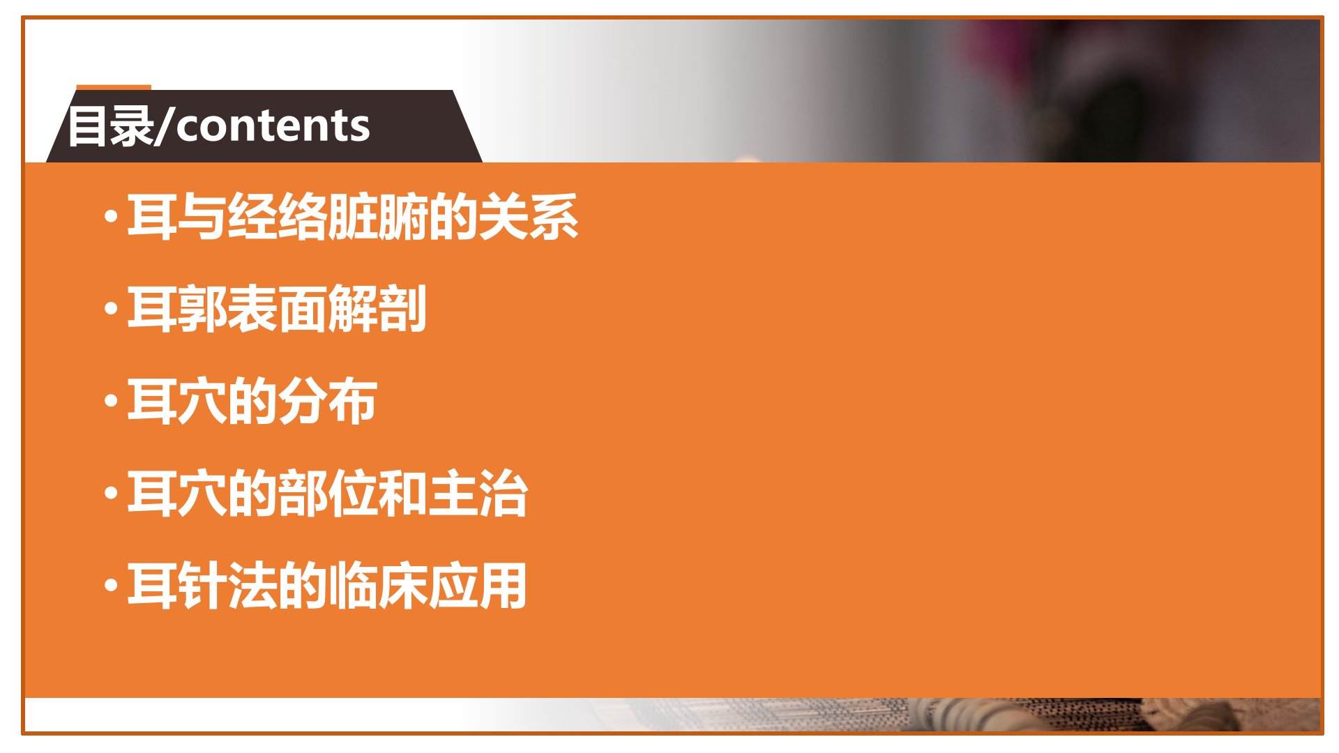 摘要第八节介绍了耳针法即采用针刺等刺激耳穴以诊断防治疾病的方法治疗范围广、操作方便对疾病诊断有参考价值。主要内容如下:1耳与经络脏腑的关系:耳与经络脏腑联系密切《内经》等有详细阐述人体病变时耳郭相应部位有反应可据此诊断防治疾病。2耳郭表面解剖:介绍了耳郭正面、背面、耳根各部位的名称和位置。3耳穴的分布:耳穴在耳郭分布如倒置胎儿不同部位对应不同身体区域。4耳穴的部位和主治:详细介绍了耳轮、耳舟、对耳轮、三角窝、耳屏、对耳屏、耳甲、耳垂、耳背、耳根各部位的穴位名称、部位及主治。5耳针法的临床应用:诊查:疾病发生时耳郭相应区域有病理反应可通过望诊法、压痛法、皮肤电阻测定法进行诊查。适用范围:包括疼痛性、炎性疾病及传染病等多种疾病还可用于催乳、催产等。选穴原则:按相应部位、脏腑辨证、经络辨证、西医理论、临床经验选穴。操作方法:有毫针法、电针法、埋针法等多种方法。注意事项:包括防止感染、控制留置时间、避免接触血液、适当活动患部等。