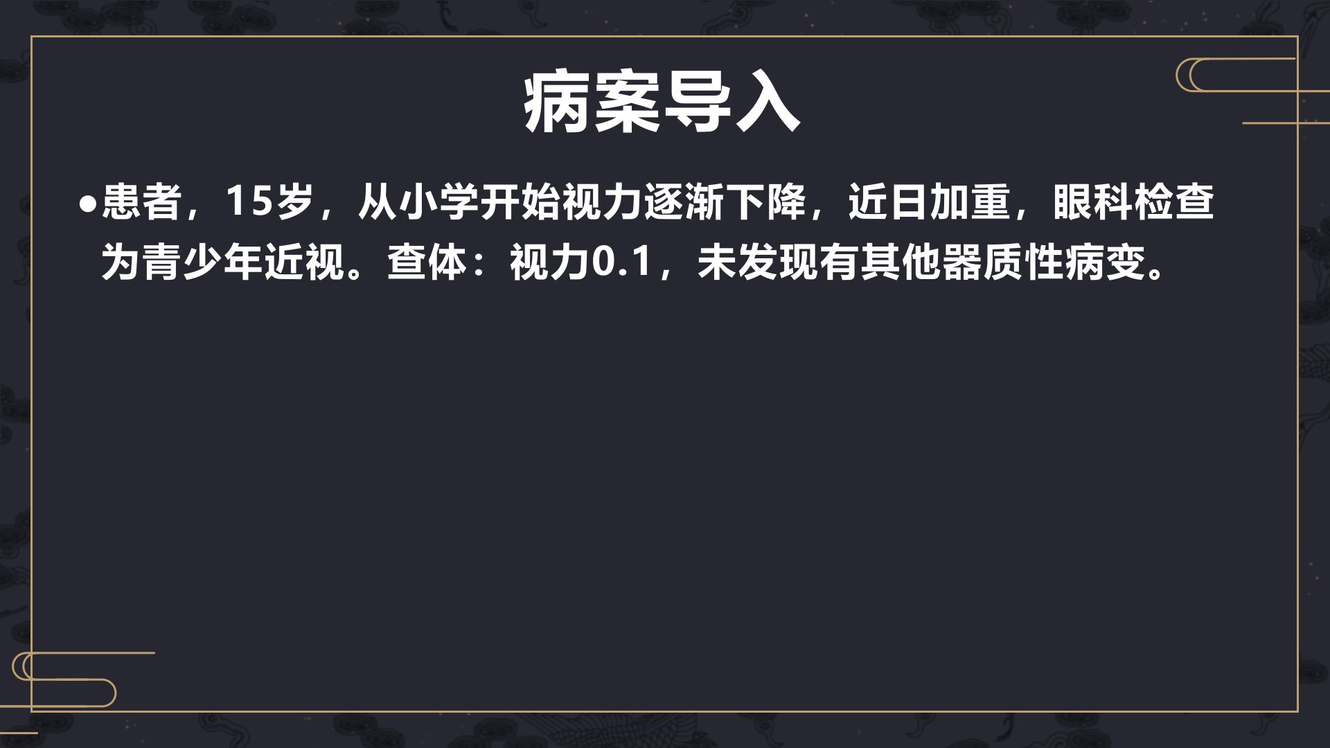 15岁患者自小学起视力逐渐下降近日加重眼科检查确诊为青少年近视查体视力01无其他器质性病变。近视古称“能近怯远症”与禀赋不足、劳心伤神及不良用眼习惯有关病位在眼与心、肝、脾、肾关系密切基本病机是目络瘀阻、目失所养。治疗上基本治法为通络活血、养肝明目主穴包括风池、承泣、睛明等配穴根据肝肾不足、心脾两虚等证型选择相应穴位。操作时需注意针刺深度和手法。此外还可采用耳针法、头针法等其他疗法。针刺治疗功能性近视效果较佳但需注重科学用眼和用眼卫生。本病例中患者通过交替应用两组穴位治疗视力从01提升至07后嘱其多按摩相关穴位巩固疗效。