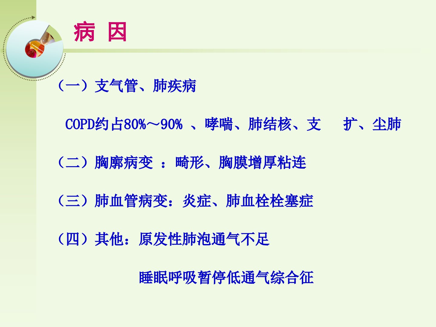 慢性肺源性心脏病患者的护理摘要慢性肺源性心脏病由肺部、胸廓或肺动脉慢性病变致肺循环阻力增高引发肺动脉高压进而导致右心室肥厚、扩大或右心衰竭。病因包括支气管、肺疾病(COPD占8090)、胸廓病变、肺血管病变等。发病机理涉及右心肥大与功能不全以及缺氧和二氧化碳潴留引起的多脏器功能损害。临床表现分为肺、心功能代偿期和失代偿期后者以呼吸衰竭和右心衰竭为主并发症包括肺性脑病等。辅助检查包括血常规、X线、心电图等。治疗要点分缓解期和急性期前者注重呼吸肌训练和免疫力提升后者则积极控制感染等。护理问题涉及气体交换受损、清理呼吸道无效等。护理措施包括一般护理、病情观察、治疗配合及心理护理。健康指导强调疾病知识普及、适当锻炼及定期随访。