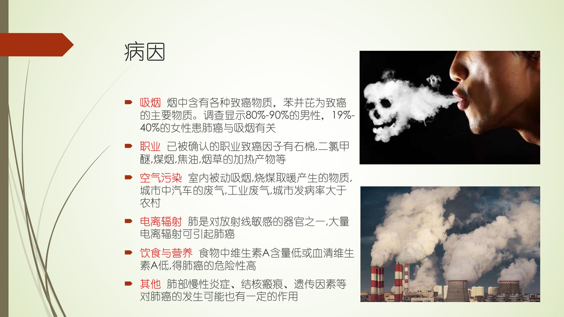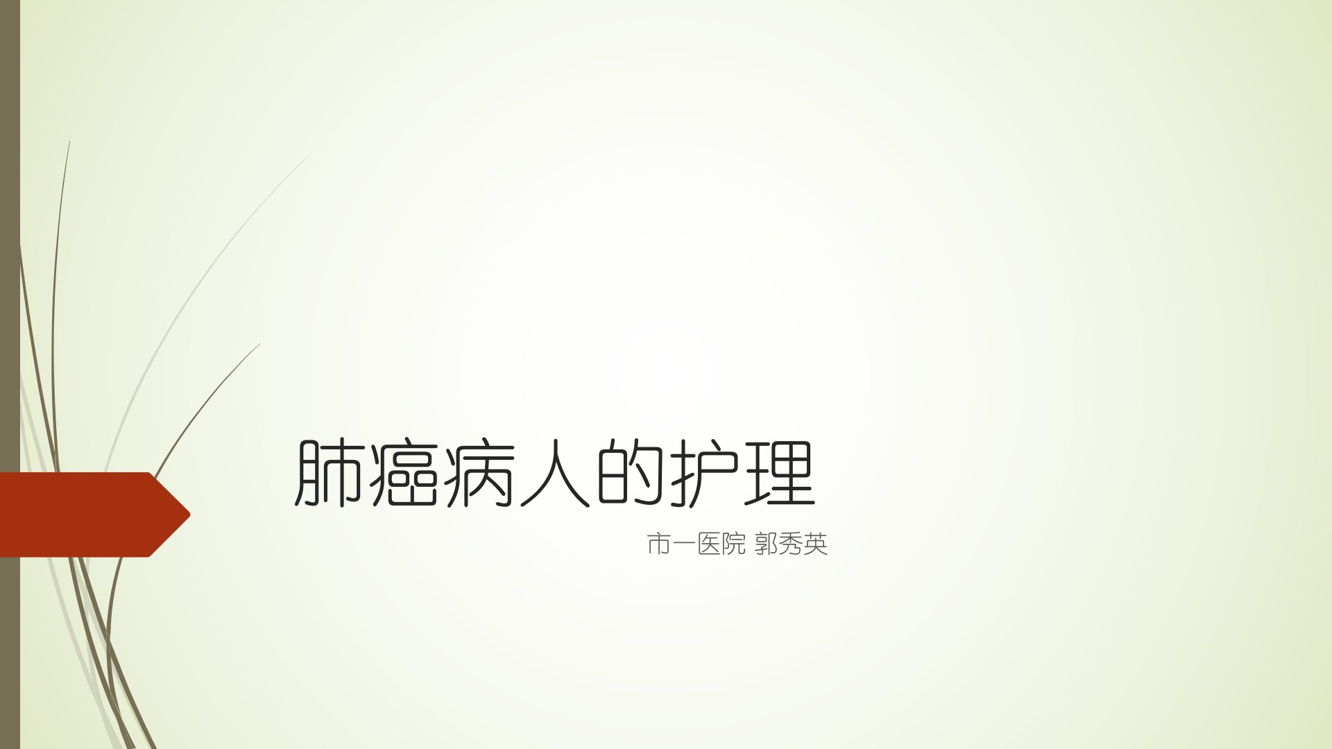 肺癌病人的护理摘要市一医院郭秀英介绍了肺癌病人的护理。肺癌病因包括吸烟、职业致癌因子、空气污染、电离辐射、饮食营养及其他因素。病理分类上按解剖学分为中央型和周围型肺癌;按组织病理学分为小细胞癌和非小细胞癌后者又包括鳞癌、大细胞未分化癌和腺癌。临床表现包括呼吸系统症状如咳嗽、咯血、胸痛等全身症状如发热、食欲减退以及癌肿压迫与转移症状。有关检查包括X线、痰液脱落细胞和纤维支气管镜检查。治疗要点为综合治疗包括手术、化疗和放疗。护理问题涉及营养失调、疼痛、恐惧等。护理措施包括一般护理如休息和体位调整营养护理如制定饮食计划、增进食欲病情观察如监测生命体征和症状变化疼痛处理如评估疼痛、指导呼吸方法及药物止痛等。同时提倡不吸烟、防治肺部疾病并组织肺癌普查。
