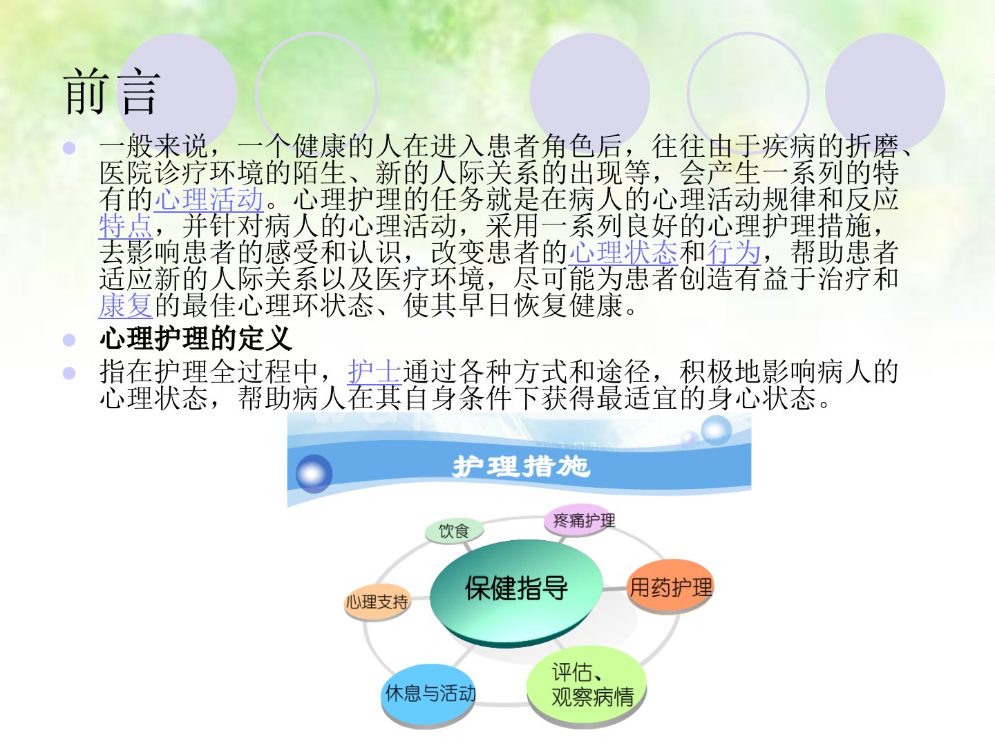 消化系统常见疾病的心理特点与心理护理摘要患者进入病人角色后常因疾病、环境变化等产生系列心理活动。心理护理旨在依据病人心理活动规律和反应特点采取措施改变其心理状态和行为助其适应新环境以达最佳心理状态促进康复。消化系统疾病患者心理特点多样:消化性溃疡患者长期精神紧张胃肠功能易受影响;消化道出血患者异常紧张恐惧;肝硬化患者因家庭负担等易绝望;急性胰腺炎患者起病急常恐惧、忧虑、焦虑、急躁且丧失信心;急腹症患者焦虑、期待、角色退化、恐惧悲观;消化道肿瘤患者经历焦虑恐惧、愤怒抗拒、妥协企求、抑郁接受等阶段;内镜诊疗操作时患者对环境、检查、手术等存在陌生、不理解、恐惧焦虑等心理。对此心理护理措施包括:与患者交流谈心给予心理支持;做好思想工作消除顾虑;密切观察心理活动消除不良因素;帮助树立信心取得患者及家属配合;针对不同疾病特点运用倾听、解释、安慰、放松疗法等技巧进行护理。