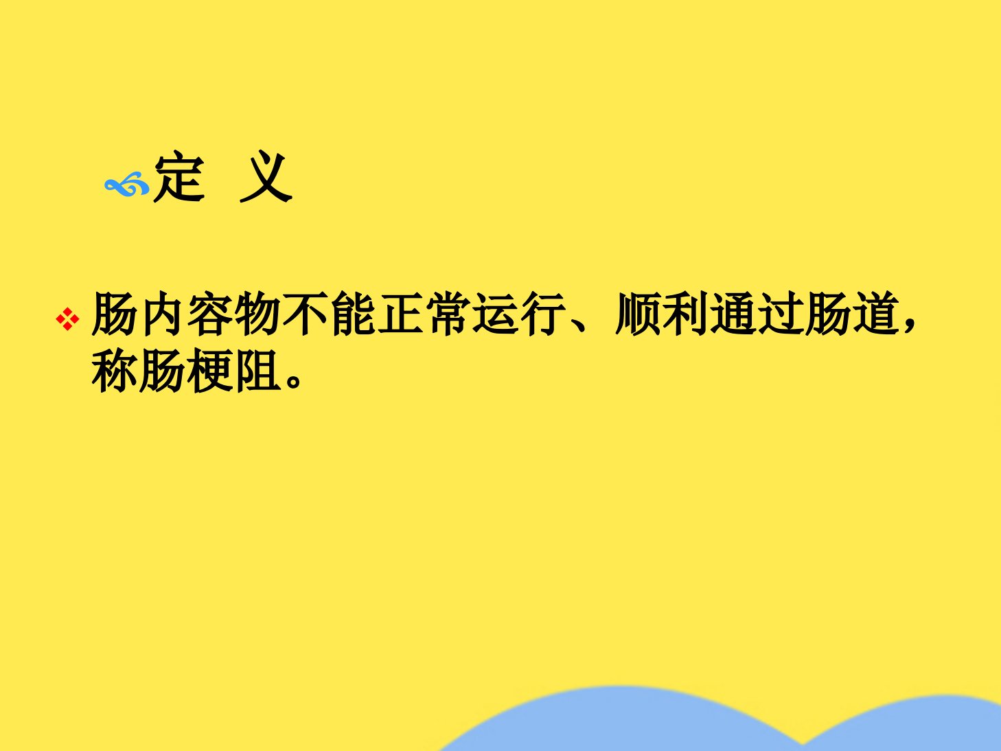 肠梗阻病人的护理授课摘要肠梗阻指肠内容物无法顺利通过肠道其分类如下:病因分类:机械性肠梗阻由肠腔堵塞、受压或病变引起;动力性肠梗阻由神经反射或毒素刺激所致分麻痹性和痉挛性;血运性肠梗阻则因肠系膜血管栓塞或血栓致肠管血运障碍。血运障碍分类:单纯性肠梗阻无血运障碍绞窄性肠梗阻有血运障碍。其他分类:按部位分高位、低位肠梗阻;按梗阻程度分完全性、不完全性;按发展快慢分急、慢性。肠梗阻后肠管局部和全身会出现复杂病理生理变化症状包括腹痛、呕吐、腹胀、肛门停止排气排便。辅助检查有实验室检查和X线检查。治疗原则为解除梗阻、纠正缺水等非手术治疗包括禁食、胃肠减压等手术治疗则解除梗阻原因。护理措施涵盖非手术疗法、手术前后护理、心理护理及健康指导目标是维持体液平衡、缓解疼痛、控制体温预防并发症。