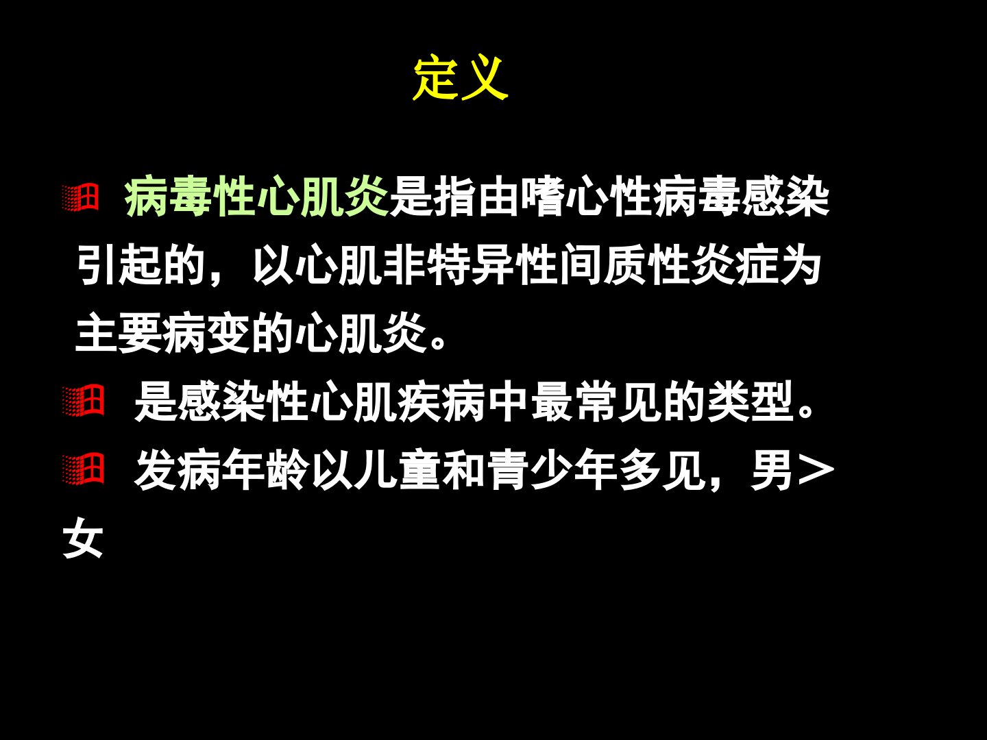 病毒性心肌炎由嗜心性病毒感染引起是感染性心肌疾病中最常见类型儿童和青少年多发常见病毒包括柯萨奇A、B组病毒等病毒可直接侵犯心肌造成损害。临床表现包括颈静脉怒张、肝肿大、心脏增大、心律失常等。辅助检查有外周血白细胞肠道病毒核酸阳性、血沉加快、C反应蛋白增加等其中血清同型病毒中和抗体增高4倍、心电图、超声心动图及心肌活检有助于诊断。处理要点包括急性期卧床休息、改善心肌营养和代谢、对症治疗、抗病毒治疗等。护理方面需关注体温过高、焦虑、活动无耐力等问题并预防潜在并发症。最重要的护理措施是急性期行心电监护密切观察生命体征及心电图变化。同时要做好一般护理向病人解释病情及治疗方案给予心理支持。