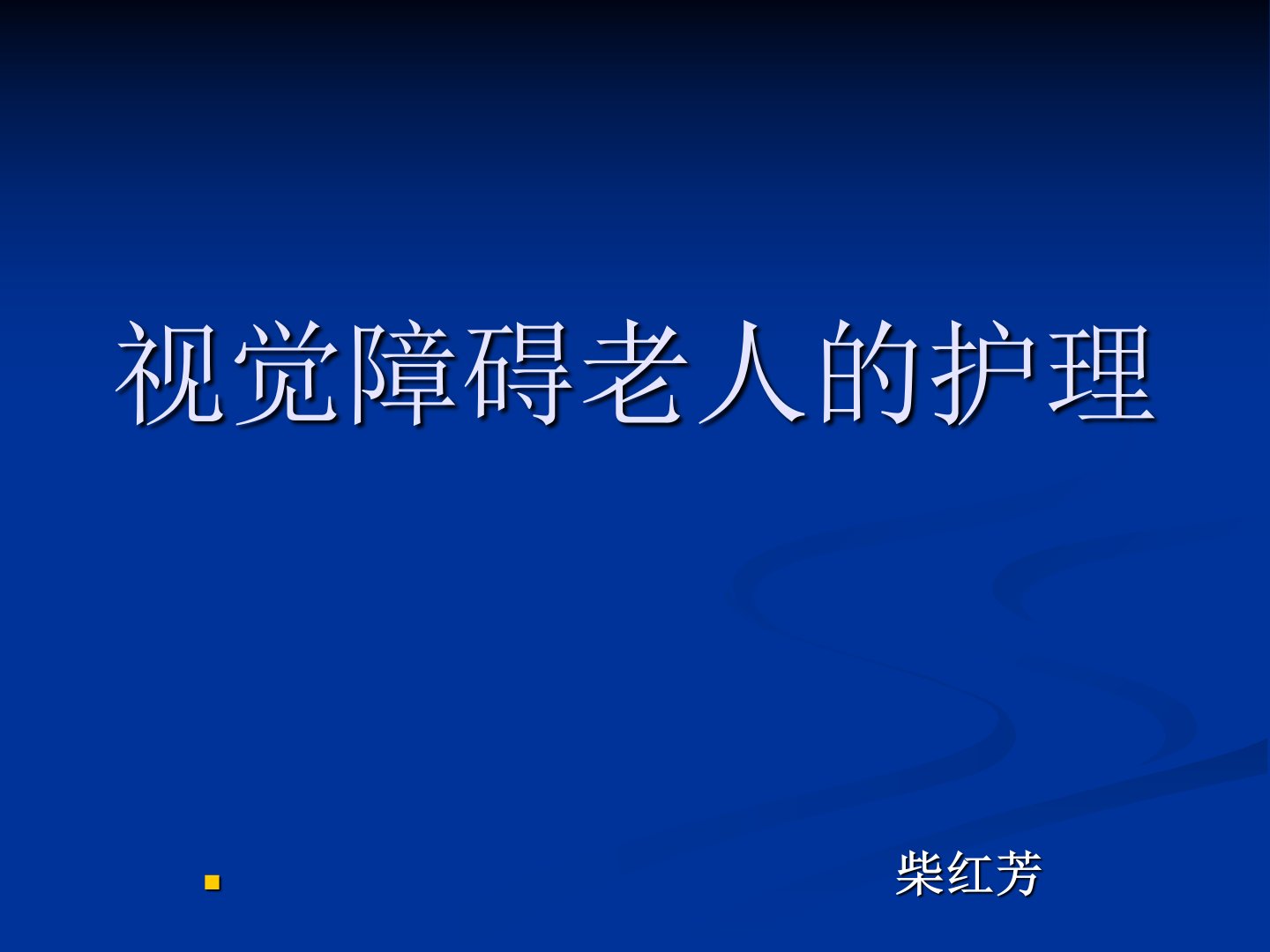 视觉障碍老人的护理摘要本文详细阐述了视觉障碍老人的护理要点。首先介绍了人体对外界环境的感知机制强调了视觉的重要性及老年人易忽视的眼部问题。一、常见眼部疾病及护理1老花眼:因晶状体硬化导致预防方法是调整营养多摄入富含维生素A、B的食物。2干眼症:泪液质或量异常引起需注意症状并及时就诊可用加湿器等缓解。3爱流泪:因眼皮松弛等导致需观察不适并尽早检查治疗。4白内障:晶状体浑浊引起需留意视力变化早期可用眼药水必要时手术。5青光眼:视神经损害和视野缺损为特征需向医生说明病情调整用药和输液量。6黄斑性病变:发达地区老年人常见致盲眼病需定期检查采取不同治疗方法。二、眼部保健法包括冷水洗眼、经常眨眼、热敷眼部、合理膳食、按摩眼睛等。三、日常护理补偿方法1照明增加及避免散光:提供适当照明增加区域性照明避免反光物品。2影像放大:放大书本字体、路标等使用放大镜等。此外还简要提及了听觉障碍、肢体障碍及认知障碍(如老年性痴呆)老人的护理要点包括沟通方式、心理复健、日常护理、安全防护等方面。