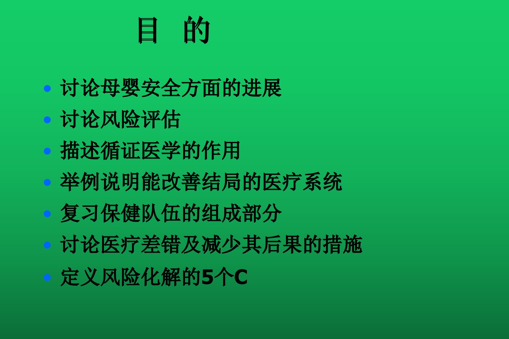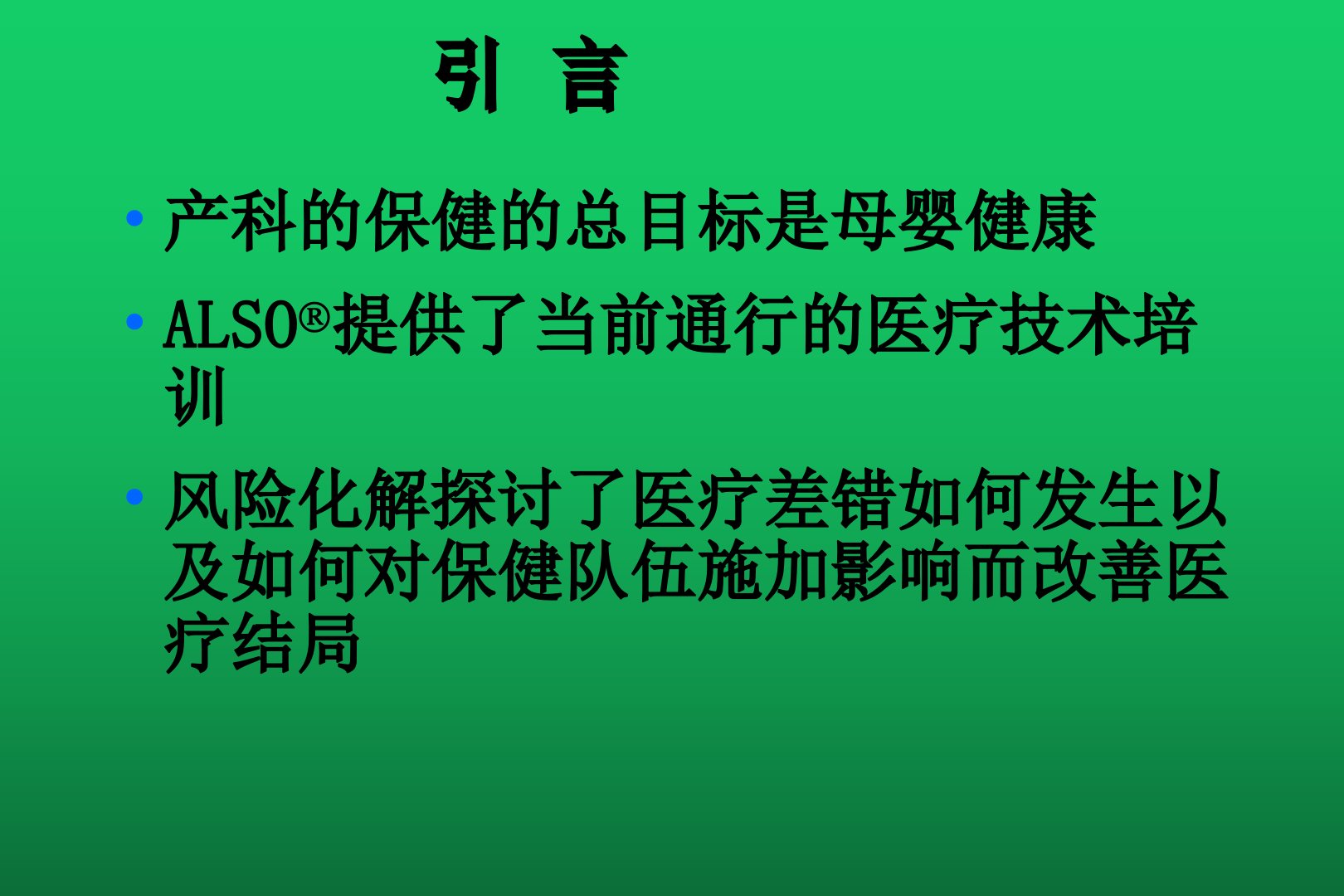 产科医疗安全关乎母婴健康本文讨论了相关安全问题及改善措施。产科保健总目标是母婴健康但全球产妇死亡率仍高不良分娩处理措施后果严重。风险评估是产科安全关键包括综合产前检查、识别高危因素等但风险评分预测价值有限。循证医学在产科医疗中正被广泛接受可提供循证医学方面的资料。医疗服务系统各地差异大加强保健系统完整性可改善服务水平。医学行为中错误常见对错误的谴责妨碍系统探讨需借鉴航空工业经验识别、纠正错误。人类行为分三个层次认知错误包括不慎失误和错误。ALSO教程采用标准化措施可减少错误。医疗队伍中孕妇、家庭、医务人员应采取倾听、建立关系等策略。良好医疗队伍能提高患者满意度解决冲突需注重利益、集体讨论。何时申请会诊及转诊需遵循一定原则会诊医师需配合工作。医疗事故诉讼常见申述包括疏忽等风险处理需遵循5个C原则:同情、交流、称职、记录、坦诚。