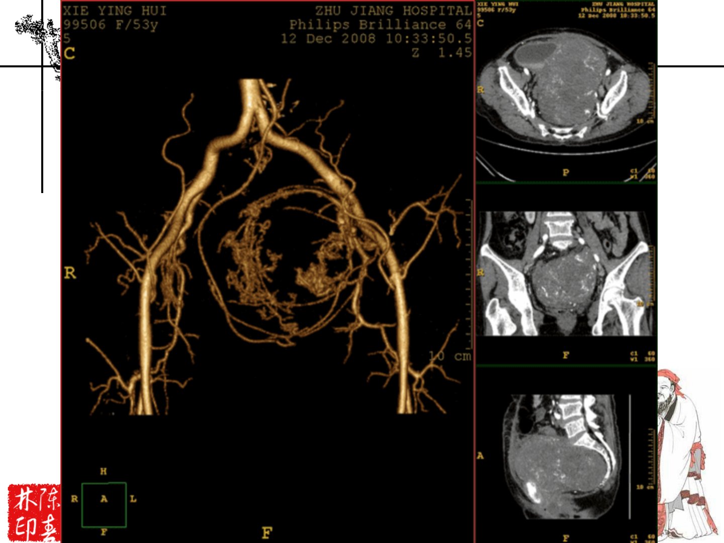 产后出血动脉治疗引入了新概念。子宫血供来自双侧子宫动脉和双侧卵巢动脉。动脉治疗包括结扎与栓塞两类:结扎有双侧髂内动脉、髂内动脉前干、子宫动脉、子宫动脉上行支及子宫动脉卵巢支结扎等;栓塞包括双侧髂内动脉、髂内动脉前干、子宫动脉、子宫动脉上行支及子宫动脉下行支栓塞等。其中动脉栓塞治疗起源于1979年Brown等完成的首例产后出血盆腔血管栓塞治疗案例国外报道成功率约97国内统计两年发表文献的有效率达965。对于特殊类型产后出血如宫缩乏力、胎盘植入等血管选择上多考虑子宫动脉或髂内动脉栓塞。栓塞药物首选新鲜明胶海绵颗粒禁用明胶海绵粉、碘油等钢圈需慎用。栓塞术后需清除宫腔积血继续应用抗生素、缩宫剂并观察性激素分泌预防宫腔粘连。