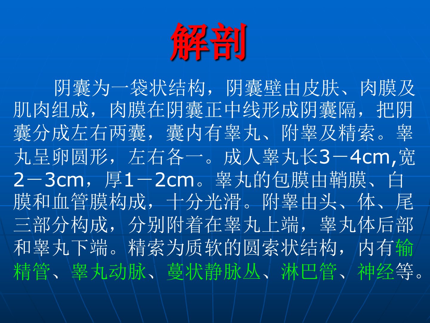 阴囊超声是评估阴囊及其内容物健康的重要工具。阴囊为袋状结构内含睾丸、附睾及精索。正常阴囊超声显示其壁由皮肤、肉膜及肌肉构成内部结构清晰睾丸呈椭圆形表面光滑实质回声均匀。针对不同病症阴囊超声表现各异:1鞘膜积液:阴囊内或精索区出现液性无回声区形态可变透光试验阳性合并感染者内部透声差。2睾丸及附睾炎:表现为睾丸、附睾肿大回声减低不均CDFI显示血流信号丰富细菌性逆行感染多先累及附睾尾部病毒性血行感染先累及睾丸。3睾丸扭转:患侧睾丸肿大回声减低CDFI示血流信号减少或消失为临床急症需及时处理。4睾丸和附睾囊肿:表现为圆形或椭圆形无回声区边界清晰无血流信号。5阴囊外伤:超声可显示阴囊血肿、睾丸挫伤或破裂表现为无回声区、低回声肿块或睾丸轮廓异常。6精索静脉曲张:精索静脉增多迂曲扩张瓦氏动作后可见返流CDFI可判断曲张程度。7睾丸肿瘤:表现为睾丸内边界清晰的肿块回声不均CDFI示血流信号丰富。8隐睾:阴囊空虚腹股沟或腹膜后可见与睾丸回声相同的结构。9腹股沟斜疝:阴囊内见由腹腔疝入的组织CDFI可显示血流信号。