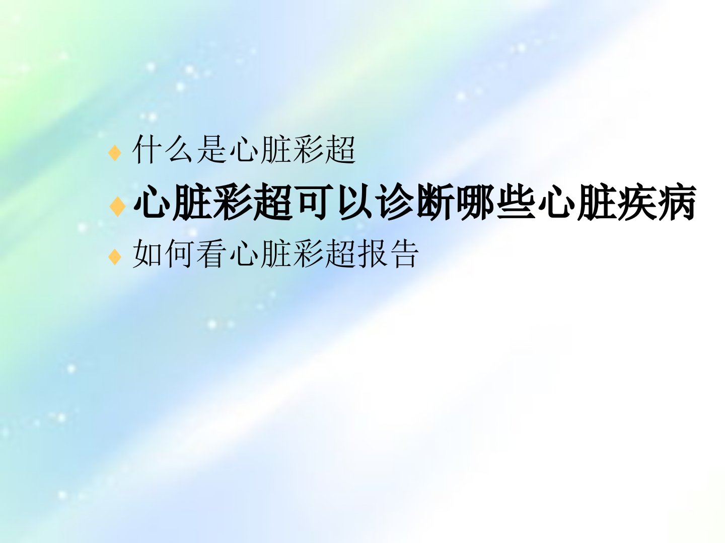 大连市中心医院超声科岳庆雄介绍了心脏彩超的临床应用。心脏彩超是应用B超、M型、多谱勒等多种技术对心脏进行检查的统称可以明确心内结构、血流情况、心脏功能达到对心脏疾病进行诊断的目的。M型超声心动图通过光点移动观察心脏反射体的深度及活动状况;多谱勒超声则利用多谱勒效应原理探测心脏、血管内血液的流向、流速及流量;彩色多普勒超声通过伪彩色编码技术显示血流方向和速度。心脏彩超可诊断多种心脏疾病包括心脏位置、结构异常、血流动力学变化、心包疾病、心脏手术及介入治疗后转归、心功能异常等如瓣膜疾病、先心病、心肌病、冠心病等。此外心脏新技术如声学造影、经食道超声心动图等也为心脏疾病的诊断提供了更多手段。看心脏彩超报告时需关注测量值、心脏位置、心内结构及血流动力学描述、心功能测定以及结论等部分。