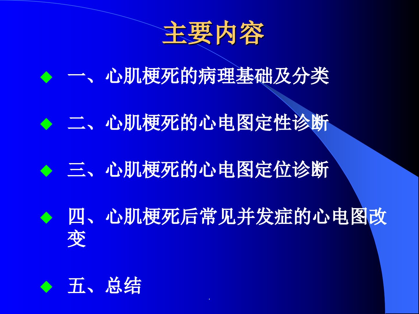《心肌梗死的心电图诊断》摘要WHO报告显示全球每年因冠心病和卒中死亡人数众多我国心血管疾病形势也十分严峻。文章围绕心肌梗死心电图诊断展开:1病理基础及分类:心肌梗死因冠状动脉狭窄加重致血流障碍引发心肌缺血坏死。80年代前按透壁、非透壁分类8090年代分Q波、非Q波型90年代后以ST段是否抬高分类新分类对治疗有指导意义。2定性诊断:冠脉梗塞后心电图随时间、缺血程度有不同表现分为缺血、损伤、梗死三种。心肌缺血影响心室复极产生STT改变;心肌损伤时ST段偏移;心肌梗死有病理性Q波等特征。诊断需关注动态变化与症状等相互印证。3定位诊断:胸导水平定位肢导冠状定位不同部位梗死对应不同导联出现坏死型Q波。4并发症心电图表现:心律失常、室壁瘤、心脏破裂、心包炎各有不同心电图表现。文章最后总结心电图是快速诊断的有效辅助检查诊断时需关注时空演变、特征性改变、定位诊断构建三维图像、动态观察等。
