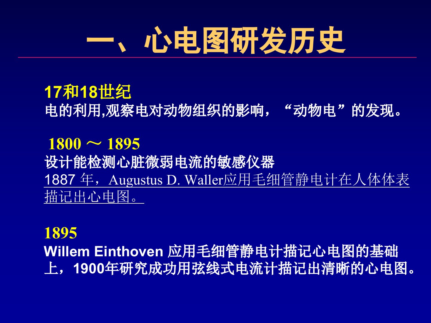 心电图临床应用110年回顾和展望摘要本文回顾了心电图110余年的发展历程并展望了其未来。文章首先介绍了心电图的研发历史包括17、18世纪电的利用、“动物电”的发现1887年Waller首次在人体体表描记出心电图以及1900年Einthoven成功用弦线式电流计描记出清晰心电图并命名了P、Q、R、S、T和U波1924年Einthoven因此荣获诺贝尔生理学和医学奖。随后文章详细阐述了记录心电图导联的发展包括盐水桶导联、双极肢导联、单极导联等。在心电产生的基础研究方面文章提到了心肌细胞动作电位和其他电生理研究的深化。心电图记录仪器也经历了从弦线电流计式到可移动式直描心电图机再到现代心电图机的发展。心电图在诊断心房肥大、心室肥厚、心肌缺血等方面具有重要价值特别在诊断心律失常方面不可或缺。最后文章介绍了心电图新的研究领域如QT离散度、P波离散度等这些领域对预测心律失常具有价值。