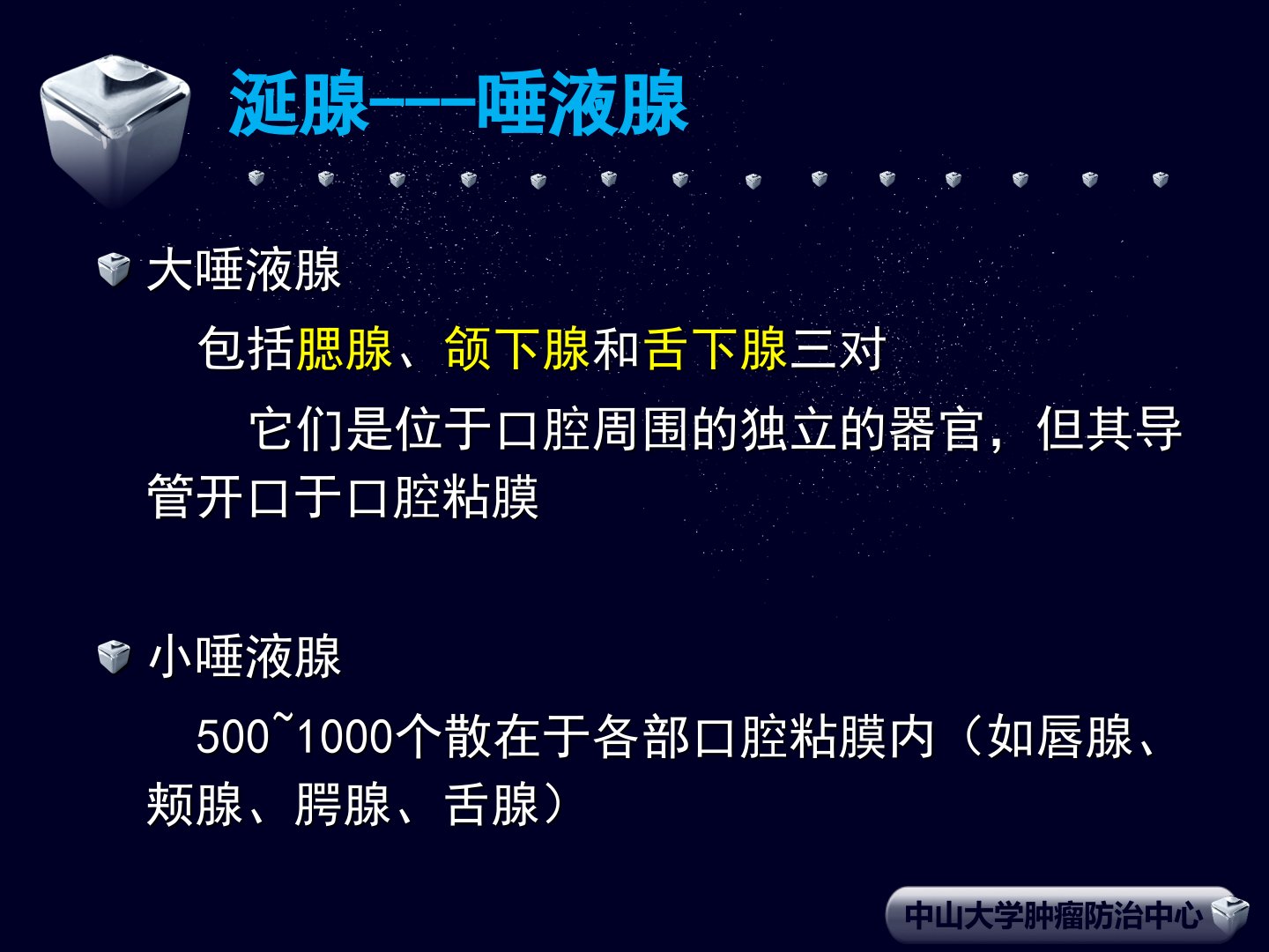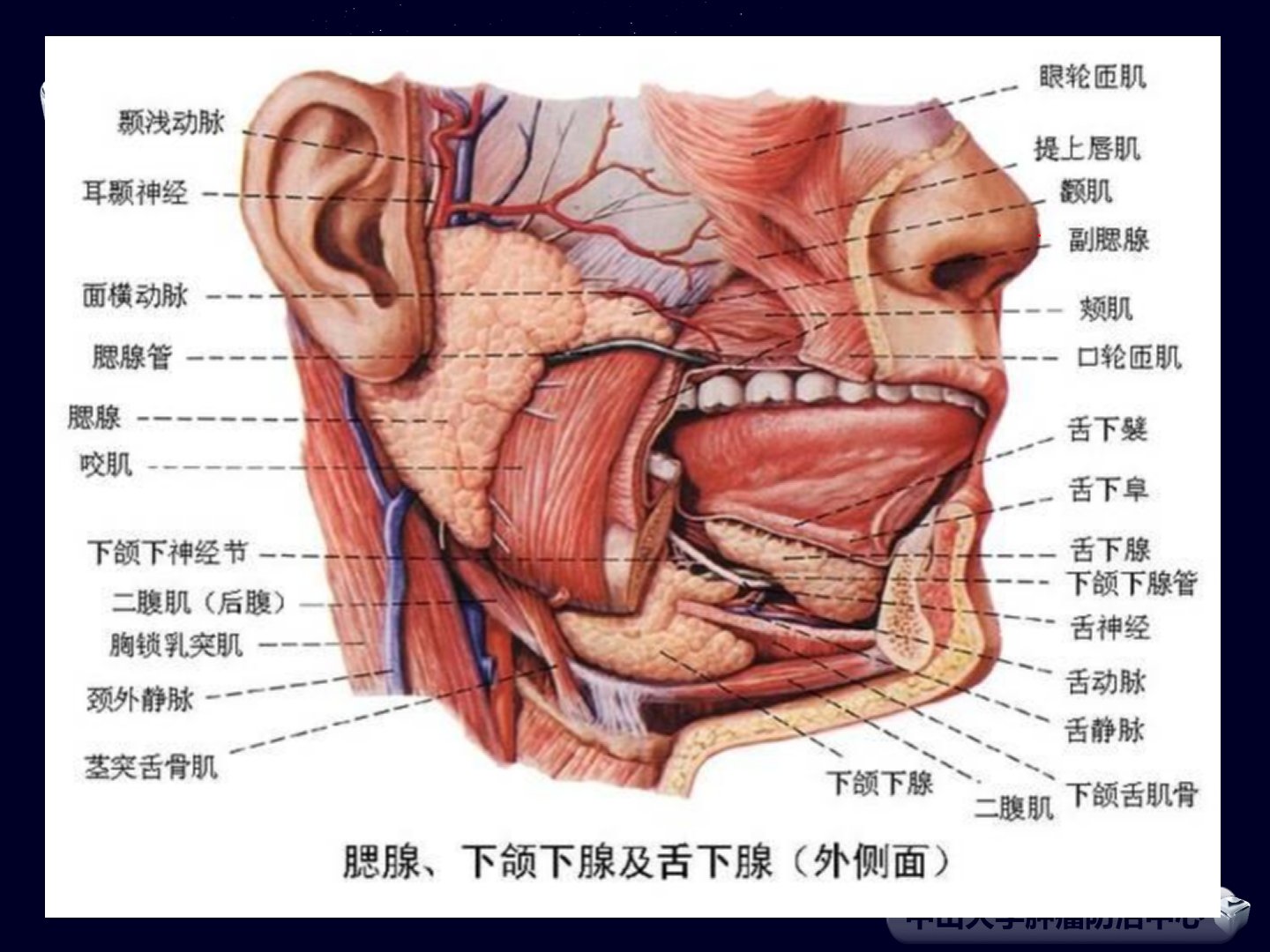 涎腺超声检查方法及诊断要点涎腺---唾液腺大唾液腺 包括腮腺、颌下腺和舌下腺三对它们是位于口腔周围的独立的器官,但其导管开口于口腔粘膜小唾液腺 500~1000个散在于各部口腔粘膜内(如唇腺、颊腺、腭腺、舌腺)超声检查特点超声诊断敏感性高----表浅部位(腮腺浅叶、颌下腺)腮腺深叶、舌下腺、小涎腺-CT/MR骨质破坏--CT特异性低----同病异像,异病同像(病理类型十分复杂)超声观察要素腺体回声特点均匀细腻高回声—正常成人均匀低回声--正常儿童弥漫蜂窝样改变—良性淋巴上皮病?慢性炎?导管有无扩张有无占位病变位置、大小、边界、回声、与周围组织关系腮腺解剖以面神经及其分支为界分为两叶:浅叶:...