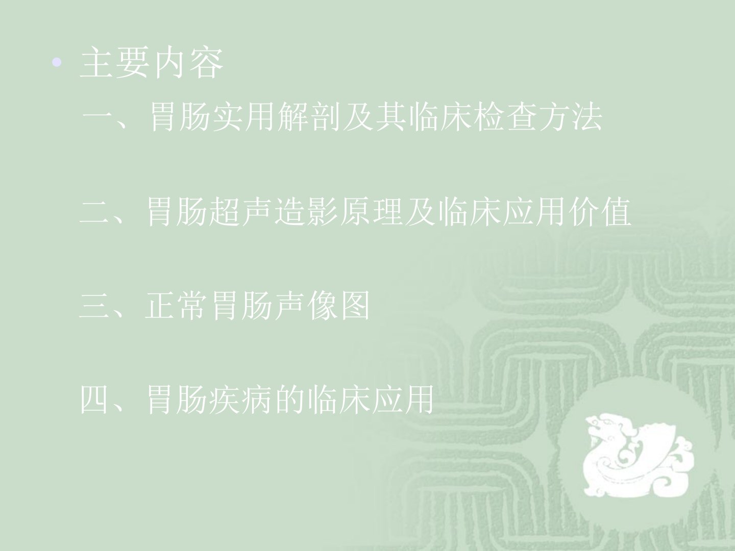 本文摘要:本文介绍了胃肠实用解剖、检查方法及胃肠超声造影的相关知识。首先概述了胃肠疾病常用的检查手段包括X线钡剂造影、内窥镜及超声检查等其中内窥镜为临床“金标准”。接着详细阐述了胃肠超声造影检查法的原理即通过口服或灌肠造影剂充盈胃肠腔消除气体等干扰改善成像环境使胃肠壁结构及病变更清晰。有回声型造影剂可消除伪像、提高病灶显示率尤其对小病灶检出率高。其临床应用价值包括成为诊断胃肠疾病的客观方法、适用于健康体检及普查、补充X线钡餐和胃镜的不足、观察胃功能等。但也有不足如易漏诊小病灶、观察粘膜不如胃镜清晰等。最后介绍了正常胃肠声像图及胃肠常见疾病的声像图表现。