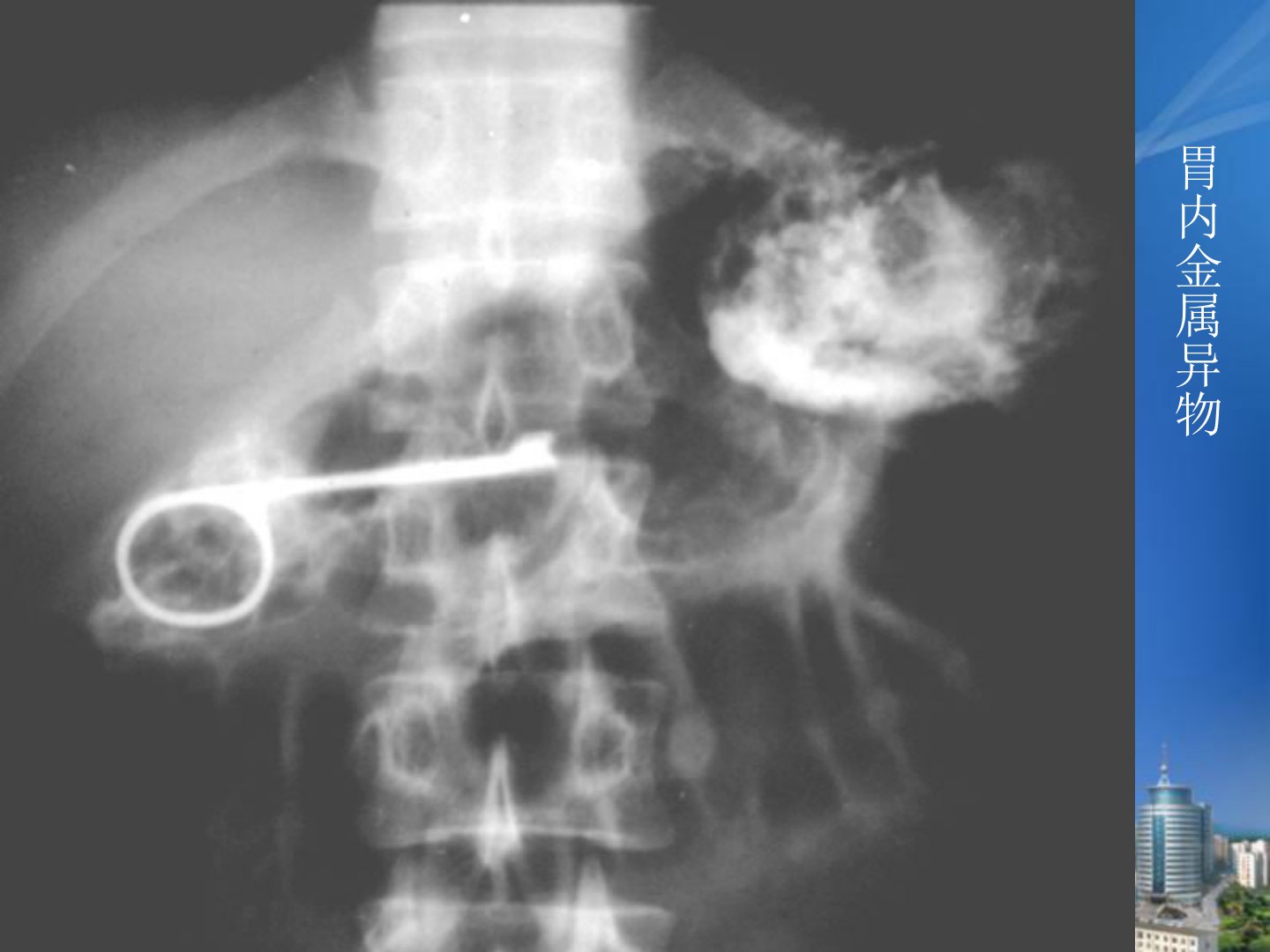食管胃的常见疾病X线表现胃内金属异物食管癌(一) 临床特征1、 我国常见恶性肿瘤之一,占全消化道肿瘤的53.6%2、 有一定的地区性3、 发病年龄常见于40岁以上,其中50-60岁为发病高峰4、 男性多于女性,男女比例为5∶1左右5、 主要症状是进行性吞咽困难。(一) 病理好发于食管中段,多为鳞状细胞癌,其次是食管下段,以腺癌为主(占少数)早期食管癌:癌肿位于粘膜及粘膜下层,瘤体一般在3cm以内,周围及远处无转移。中晚期食管癌:癌肿侵入肌层,外膜及以外有局部及远处淋巴转移。髓质型:病变范围广,累及食管全层,腔内腔外同时生长,管壁增厚,管腔狭窄蕈伞型:亦称增生型、息肉型、结节型。病变累及管壁...