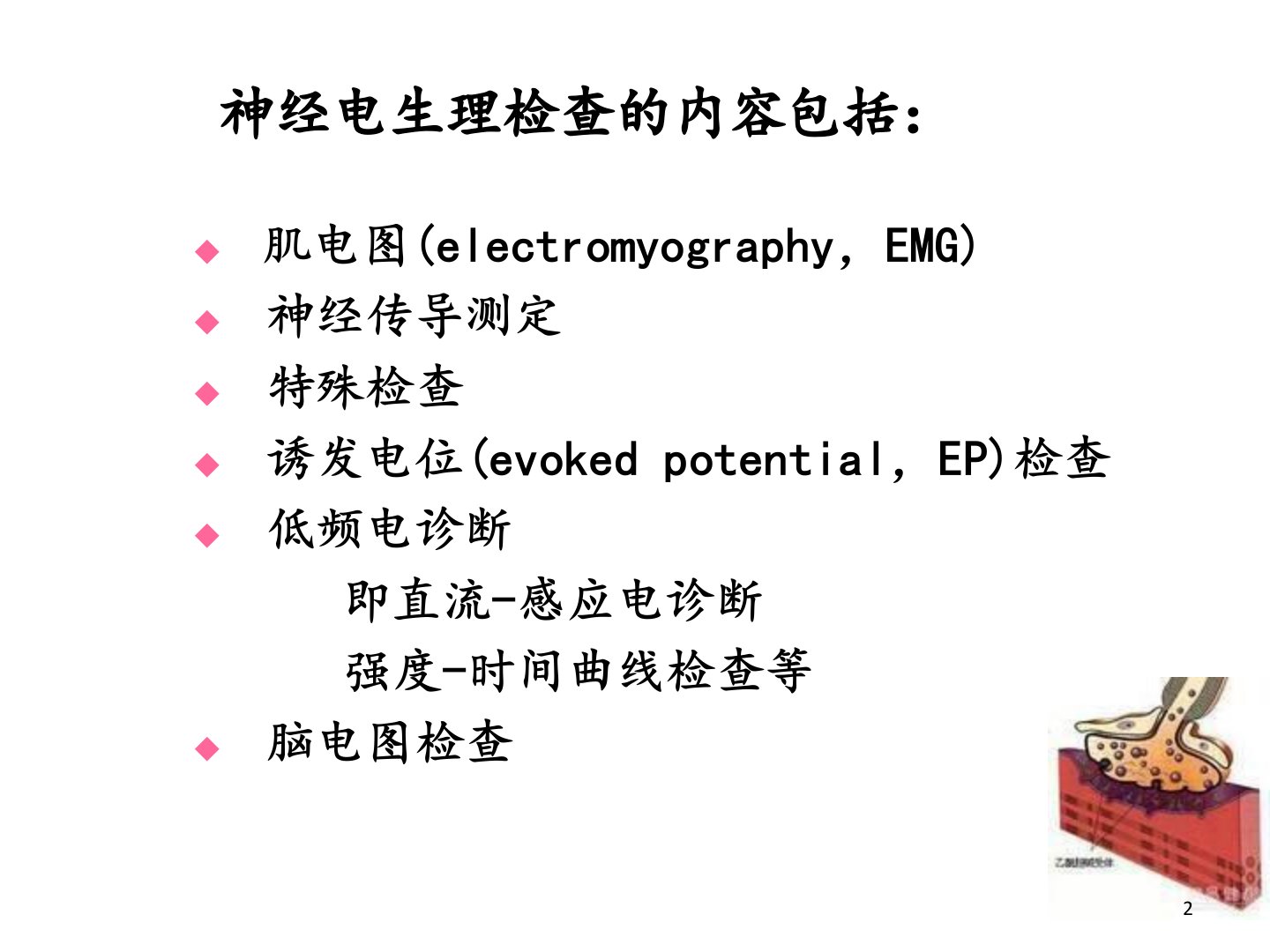 摘要神经电生理检查涵盖肌电图(EMG)、神经传导测定、诱发电位(EP)、低频电诊断及脑电图(EEG)等。肌电图检查包括针极与表面肌电图前者通过插入针电极记录肌肉电位变化了解运动神经元及肌肉功能状态可鉴别神经源性与肌源性疾病;后者将电极置于皮肤表面安全简便可反映肌肉生理生化改变应用于运动与康复医学。神经传导速度检测分运动与感觉神经传导可评估神经肌肉功能状态。诱发电位指中枢神经系统受刺激产生的生物电活动包括躯体感觉、脑干听觉、视觉和运动诱发电位各有其临床应用价值。脑电图通过安放电极描记大脑神经细胞生物电活动反映大脑功能状态用于神经系统疾病诊断其特征包括频率、波幅、波形等正常与异常脑电图的界定需考虑年龄、生理状态等因素且脑电图不能单独用于临床诊断。