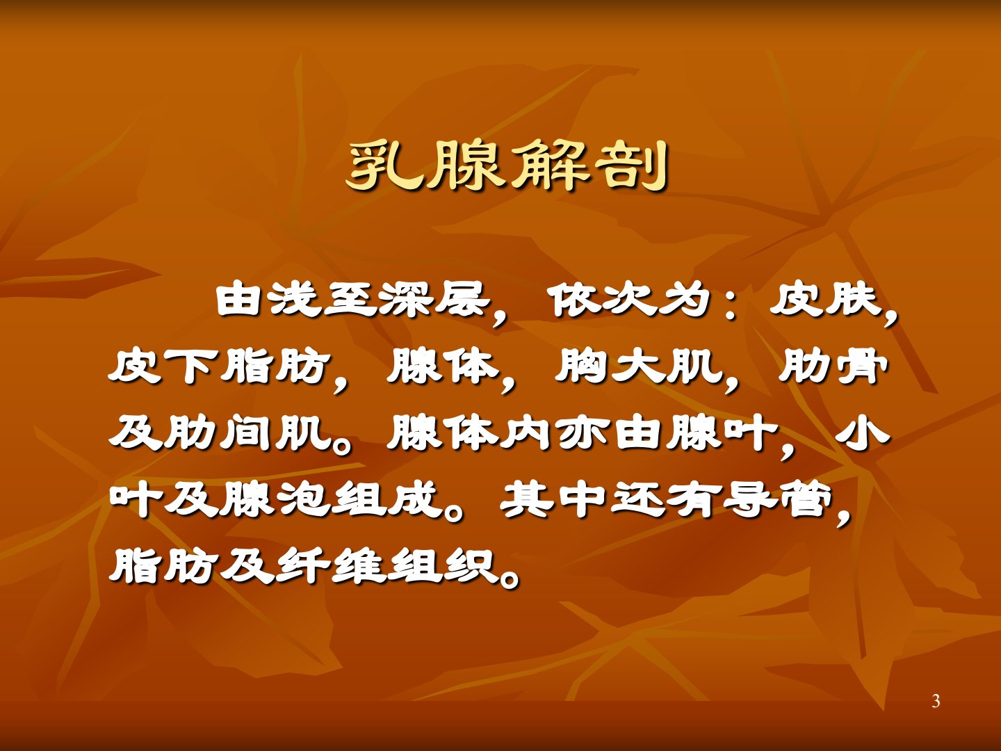 乳腺解剖由浅至深依次为皮肤、皮下脂肪、腺体、胸大肌、肋骨及肋间肌腺体由腺叶、小叶及腺泡组成。乳腺生理作用分五个阶段。正常成人乳腺声像图有特定表现正常值因乳房差异大无统一标准检查时需注意生理状态、与对侧比较及有无填充物。乳腺疾病适应症包括乳腺炎、乳腺增生病、导管扩张症、良恶性肿瘤等不同疾病超声表现各异如乳腺炎肿物边界模糊、回声增强脓肿形成时内部呈无回声区;乳腺增生病两侧乳房增大、结构紊乱;乳腺癌癌瘤边界不整、内部低回声、血流增多等。超声诊断乳腺疾病有优点如无放射性、可鉴别囊性与实性占位病变等也有缺点。CDFI对乳腺疾病的价值需结合二维超声恶性病灶血流信号敏感性高但特异性不高。乳腺超声的进展包括选择高频探头、选用新仪器、造影剂及彩色多普勒超声的应用等。