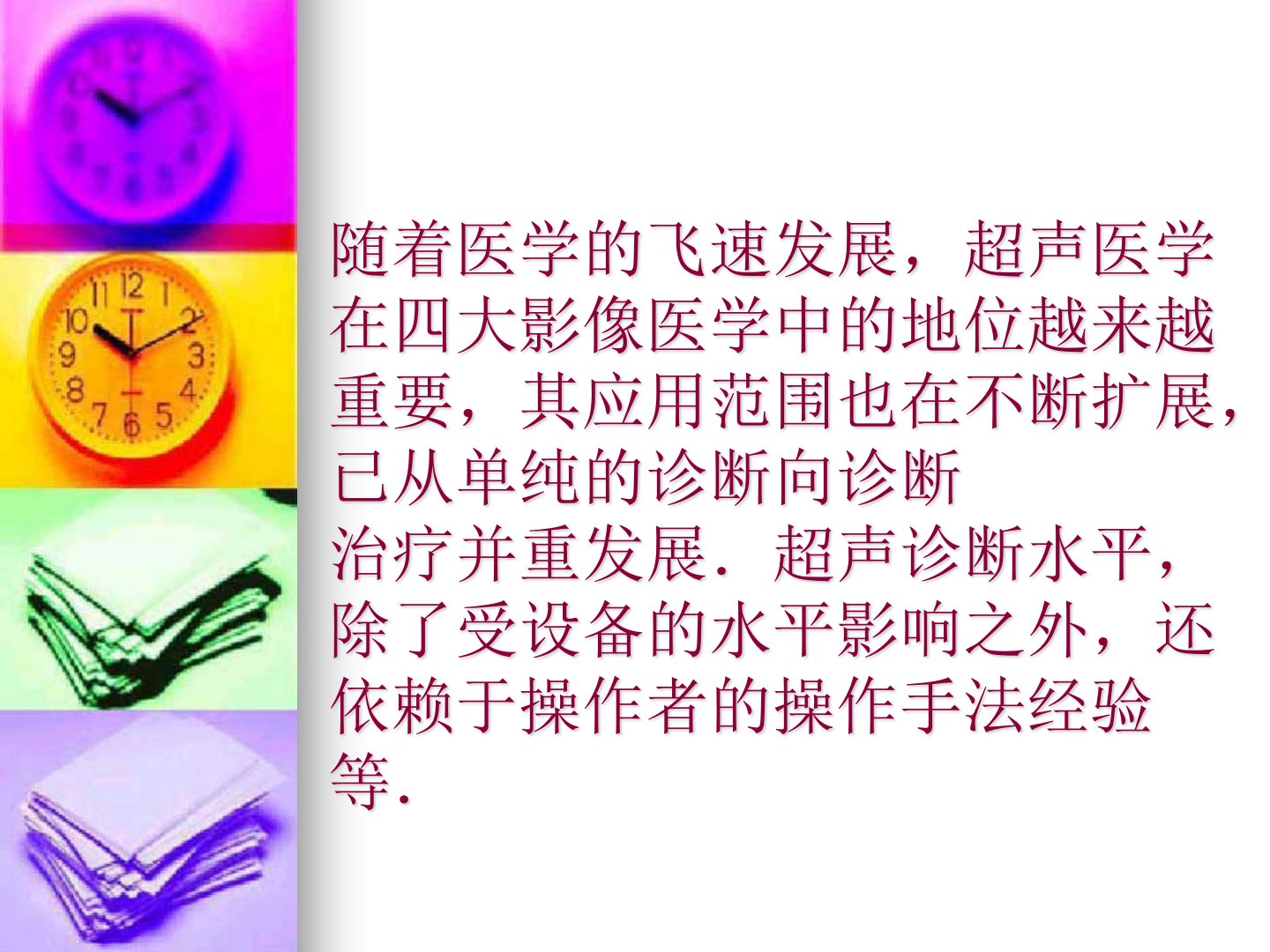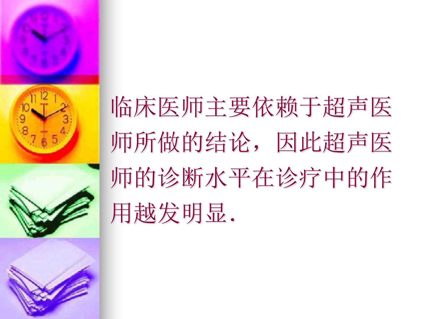 随着医学发展超声医学地位愈发重要应用范围从单纯诊断向诊断治疗并重拓展。临床医师依赖超声医师结论因此超声医师诊断水平作用明显。合格超声医师需具备深厚临床知识、扎实理论基础与娴熟实践技能。深厚临床知识要求掌握疾病内在联系多与患者交流;扎实理论基础涵盖解剖、生理、病理等多方面知识影响对疾病特征的认识与诊断思维;娴熟实践技能则能提供有价值诊断信息。获取条件的方法上超声医师要有强烈求知欲多请教、与临床医师加强联系、建立随访制度。同时要明确知识结构珍惜病例机会与专家交流。此外超声医师要有责任心认真对待患者坚持追踪随访疑难病例多下病房及时、详细、有针对性、系统性地反馈随访力求诊断报告恰当准确避免犯技术性和责任性错误。