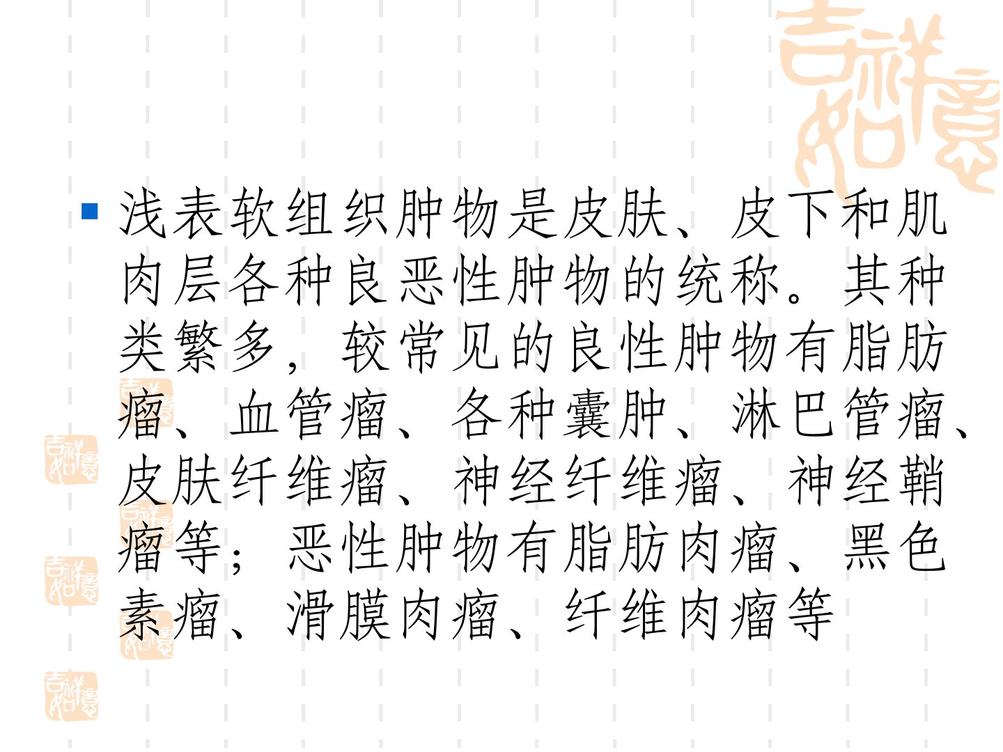 浅表肿物的超声诊断思路摘要浅表软组织肿物涵盖皮肤、皮下和肌肉层的良恶性肿物常见良性有脂肪瘤、血管瘤等恶性有脂肪肉瘤、黑色素瘤等。其临床表现因肿瘤类型和部位而异预后差别大。CT、MRI等大型设备诊断特异性高但价格昂贵而超声检查敏感性高虽特异性较差但随着高分辨率高频探头等新技术应用特异性不断提高且具有方便、实时、可重复性强、价格低等优点应用日趋广泛。诊断时先问清病史、简单查体再开展超声检查。要根据肿物大小、范围选合适探头扫查时注意手法力度。浅表肿物可分为假性肿物(如脓肿、血肿)和真性肿物后者又包含多种不同组织来源的肿物。常见软组织肿物中脂肪瘤多呈椭圆形或分叶状回声与其病理类型关系较大基本瘤体内无彩色血流;脂肪肉瘤轮廓较清晰周边及内部可见较丰富血流;血管瘤多为含有小腔的混和结构加压试验阳性;皮肤囊肿边界清晰规则内部回声多样;神经纤维瘤、神经鞘瘤各有特点恶性神经鞘瘤可出现骨质破坏。