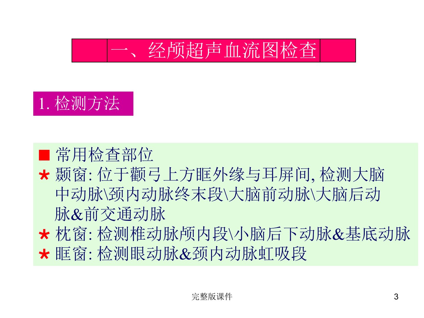 头颈部血管超声与放射性核素检查摘要一、头颈部血管超声检查经颅超声血流图检查1检测方法:常用检查部位包括颞窗(检测大脑中动脉等)、枕窗(检测椎动脉颅内段等)及眶窗(检测眼动脉等)。2TCD检测指标:异常血流速度参数包括收缩期峰流速Vs等Vm最常用最有意义。正常颈外动脉与颈内动脉血流频谱搏动指数不同。异常TCD血流信号特征多样如信号消失、血流速度异常等。3临床应用:脑血管畸形定位、术中术后监测;颅内外段脑动脉狭窄闭塞确诊率高;脑血管痉挛诊断与随访;脑动脉血流微栓子监测;锁骨下动脉盗血综合征观察。颈动脉超声1检测方法:检测部位涵盖双侧颈总动脉、颈内动脉、颈外动脉等。2检查内容:异常检测包括血管壁结构异常、血流动力学变化异常等。3临床应用:诊断颈动脉粥样硬化、先天性颈内动脉肌纤维发育不良、颈动脉瘤等多种疾病。二、放射性核素检查单光子发射计算机断层脑显像(SPECT)1原理:利用放射性示踪剂在脑内分布与局部脑血流量成正比的特点通过断层扫描影像重建获得结果。2临床意义:检测脑血流脑代谢对颅内占位性病变、急性脑血管病等多种疾病有诊断价值。3方法:静脉注射显像剂SPECT系统采集图像并处理重建。正电子