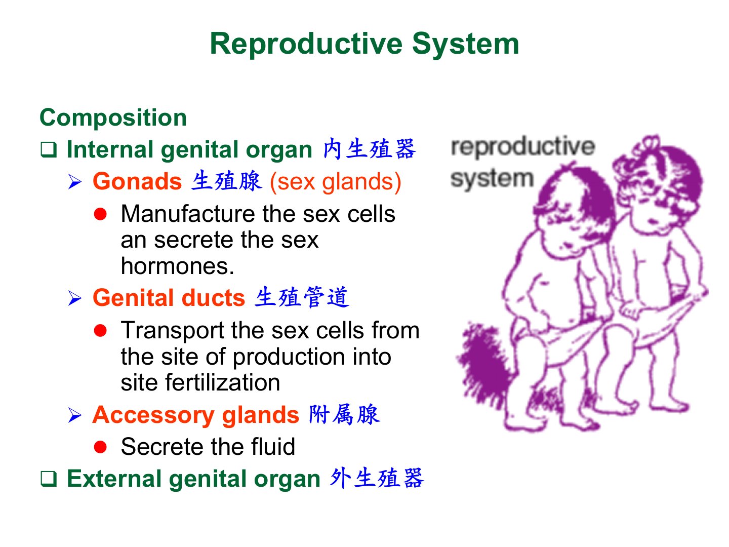 生殖系统由内生殖器和外生殖器组成内生殖器包括生殖腺、生殖管道和附属腺。生殖腺负责制造性细胞和分泌性激素生殖管道负责运输性细胞附属腺则分泌液体。以克隆羊多莉为例其1996年出生2003年死亡是由乳腺上皮克隆而来。男性生殖系统中内生殖器包括睾丸、附睾、输精管、射精管、男性尿道及附属腺(精囊、前列腺、尿道球腺)。睾丸位于阴囊内产生精子和分泌雄激素结构包括白膜、睾丸纵隔等。附睾呈逗号状是精子积累和储存的地方。输精管是厚壁肌性管负责运输精子分为睾丸部、精索部、腹股沟部和盆部精索包含输精管、动脉、静脉丛等。射精管由输精管和精囊导管末端联合形成。精囊分泌精液部分成分前列腺位于膀胱后呈栗形有五个叶。尿道球腺位于会阴深横肌内。外生殖器包括阴囊和阴茎阴囊是位于阴茎根部的薄皮囊阴茎包括阴茎头、阴茎体和阴茎根内有阴茎海绵体和尿道海绵体。男性尿道长约1622cm分为前列腺部、膜部和海绵体部有三个狭窄和三个扩大部位以及两个弯曲。