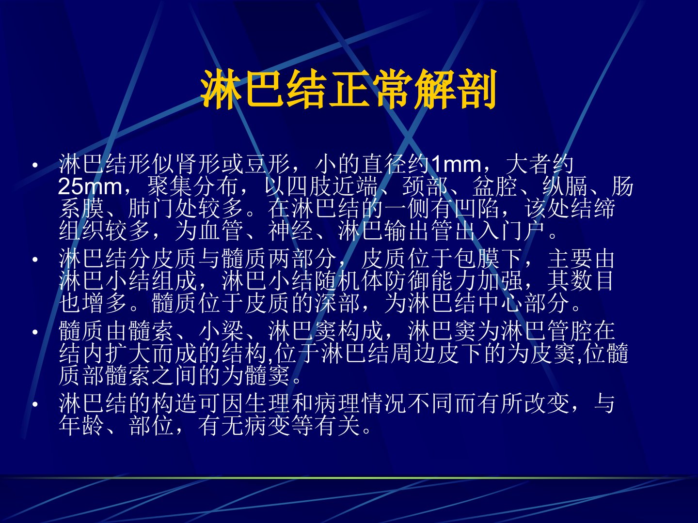 浅表淋巴结疾病的超声淋巴结正常解剖淋巴结形似肾形或豆形,小的直径约1mm,大者约25mm,聚集分布,以四肢近端、颈部、盆腔、纵膈、肠系膜、肺门处较多。在淋巴结的一侧有凹陷,该处结缔组织较多,为血管、神经、淋巴输出管出入门户。淋巴结分皮质与髓质两部分,皮质位于包膜下,主要由淋巴小结组成,淋巴小结随机体防御能力加强,其数目也增多。髓质位于皮质的深部,为淋巴结中心部分。髓质由髓索、小梁、淋巴窦构成,淋巴窦为淋巴管腔在结内扩大而成的结构,位于淋巴结周边皮下的为皮窦,位髓质部髓索之间的为髓窦。淋巴结的构造可因生理和病理情况不同而有所改变,与年龄、部位,有无病变等有关。头颈部淋巴结头颈部淋巴结有纵形和环形...