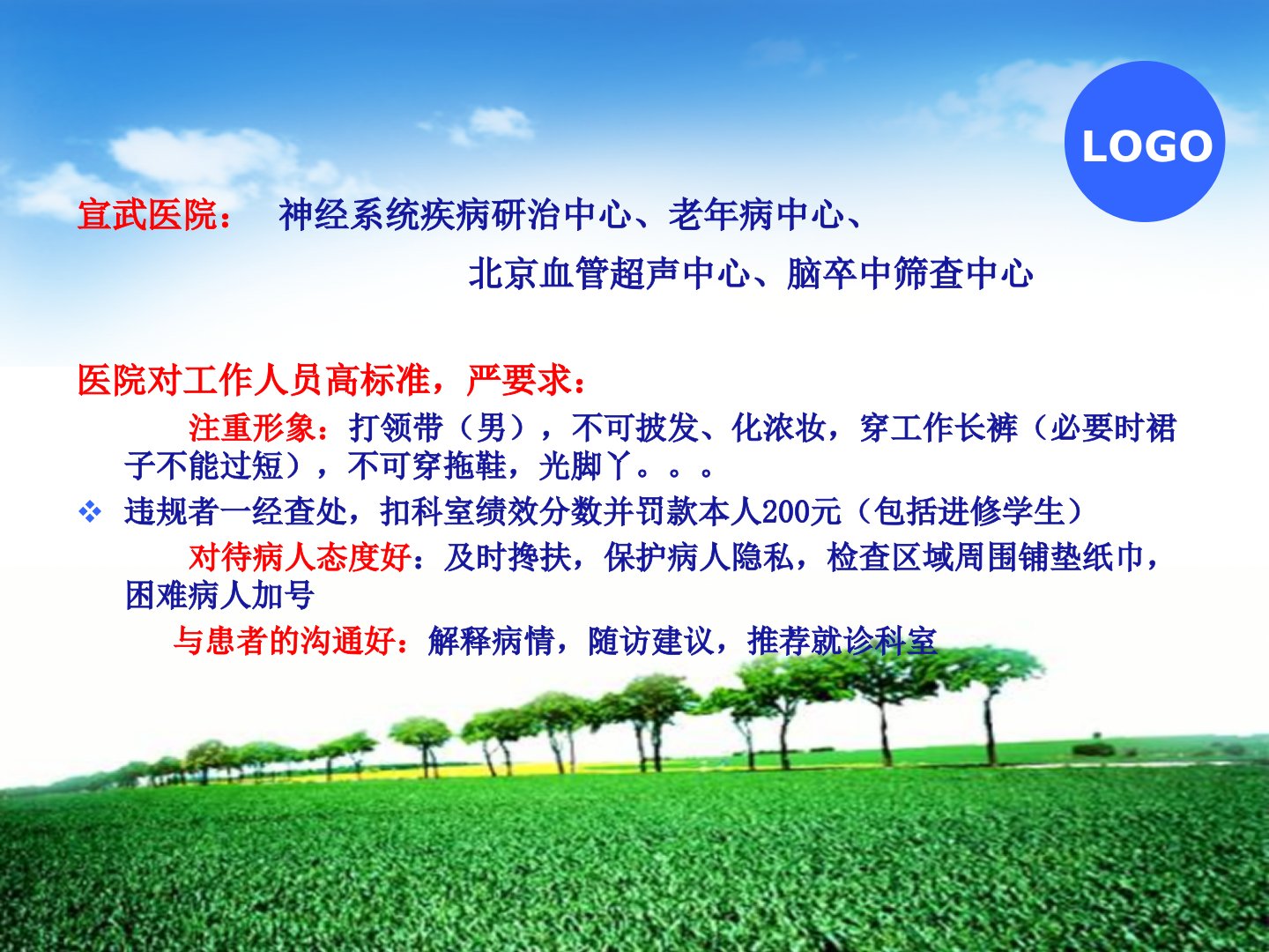 宣武医院作为神经系统疾病等研治中心对颈动脉超声检查工作制定了严格规范。医院要求工作人员注重形象违规将受处罚;对待病人态度要好保护隐私做好沟通。颈动脉超声检查工作特点包括检查内容及报告详尽每根动脉都要测量频谱记录参数部分病人需存图并自动上传至数据库且存图要求高。脑血管病已成为我国国民首位死因脑、颈血管的超声检查是重要项目。颈动脉狭窄患者有特定症状高血压等均为高危因素有相关症状或高危因素者应到医院完善检查。颈动脉超声检查需多科室合作主要检查内容包括颈总动脉、颈内动脉、颈外动脉等检查方法涵盖体位、病史、探头选择等通过双侧比对观察进行检测。