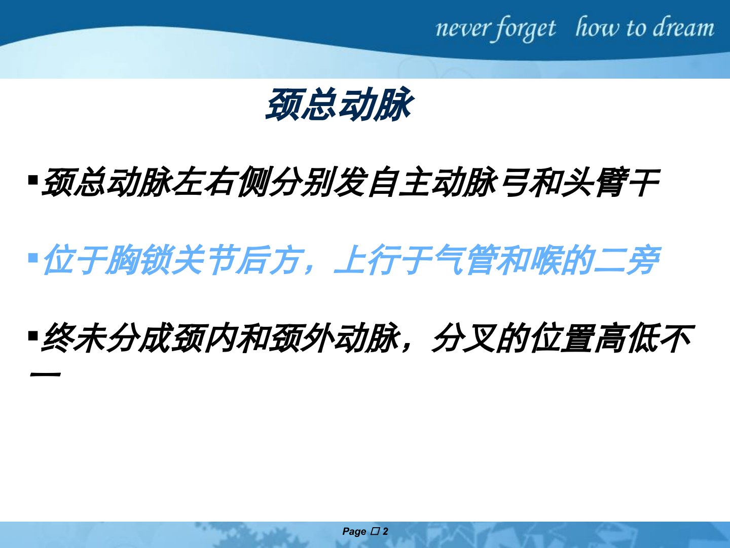 颈部血管超声摘要本文详细介绍了颈部血管的超声检查方法及相关病症。颈总动脉左右侧分别发自主动脉弓和头臂干颈动脉窦为压力感受器颈内动脉在颅外无分支颈外动脉伴行于颈内动脉前内侧有多个分支。椎动脉发自锁骨下动脉分四段入颅腔并与对侧椎动脉汇合成基底动脉。检查方法包括探头横向、纵向扫查以鉴别颈内、颈外动脉显示椎动脉纵向探测观察血管内膜变化测量IMTCDFI观察血流情况PWD测定血流参数等。临床意义方面血流速度增快多见于管腔狭窄、血管痉挛病人减慢则多见于脑供血不足等病人。RI、PI反映血管阻力和弹性异常有助于诊断多种病症。颈动脉粥样硬化是脑缺血病变主因声像图分四类。椎基底动脉供血不足病因包括血管变异、椎动脉粥样硬化、颈椎病等临床表现有眩晕、视力障碍等超声诊断要点包括观察椎动脉管径、血流速度等。