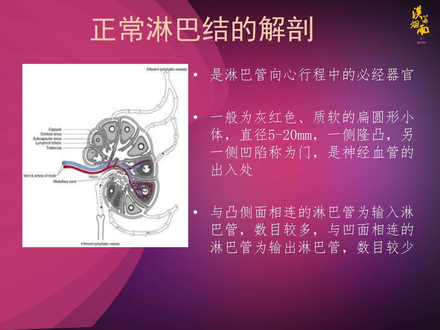 医生郭允鹏日常需面对众多肿瘤患者检查浅表淋巴结是重要工作环节。正常淋巴结为灰红色、质软的扁圆形小体直径520mm由皮质区、副皮质区、髓质区构成。淋巴结多汇集成群分深、浅两层常见于四肢关节屈侧等位置内脏淋巴结多位于脏器门附近等。常见淋巴结分类有正常和异常淋巴结异常又分良性和恶性病变良性如淋巴结反应性增生、特殊性感染等恶性如淋巴瘤、转移性淋巴结。进行淋巴结超声诊断时不同部位、年龄的正常淋巴结大小不同仅依据大小描述、诊断无意义需从解剖区域、大小、纵横比、淋巴结边界、淋巴门、淋巴结皮质、内部回声、辅助特征(CDFI、RI、PI)等方面判断。颈部淋巴结按AJCC标准分7个区。其中良性淋巴结多呈梭形、长椭圆形恶性多呈圆形边界、淋巴门、皮质等特征也有差异内部回声水平判定以毗邻肌肉为参照物彩色血流评估分四型。不同病变类型的淋巴结各有特征超声引导下细针穿刺细胞学检查有助于确诊鉴别诊断很重要。