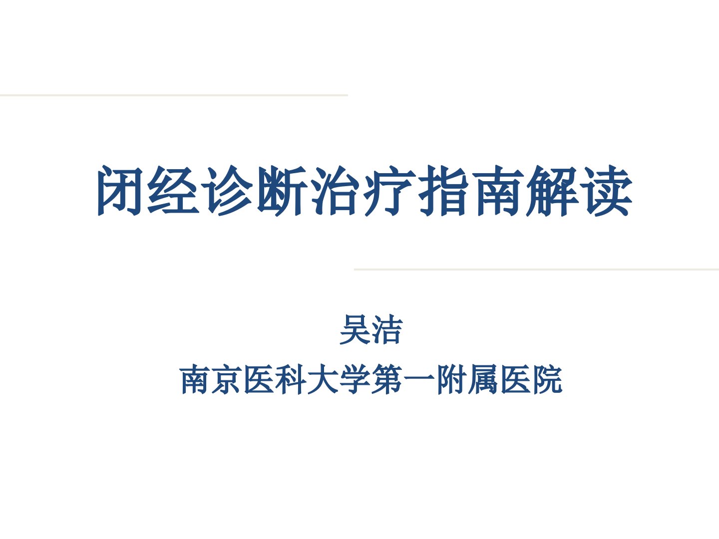 《闭经诊断治疗指南解读》由中华医学会妇产科分会妇科内分泌学组制定南京医科大学吴洁教授解读。本指南仅针对病理性闭经适用于全国各级医疗卫生机构及妇科执业医师。指南中闭经分为原发闭经和继发闭经按生殖轴病变和功能失调的部位分类。病因包括下丘脑性(如应激性、运动性闭经等)、垂体性(如垂体肿瘤)、卵巢性(如卵巢早衰)、子宫性及下生殖道发育异常性闭经等。诊断包括病史诊断、体格检查、妇科检查、实验室辅助性检查、其他辅助检查需关注月经史、婚育史等通过孕激素试验、雌激素试验等评估闭经程度。治疗须关注生殖健康问题治疗原则包括病因治疗、雌激素替代或及孕激素治疗、针对疾病病理生理紊乱的内分泌治疗、诱发排卵、辅助生育治疗。WHO将闭经分为三型不同类型治疗方法不同。