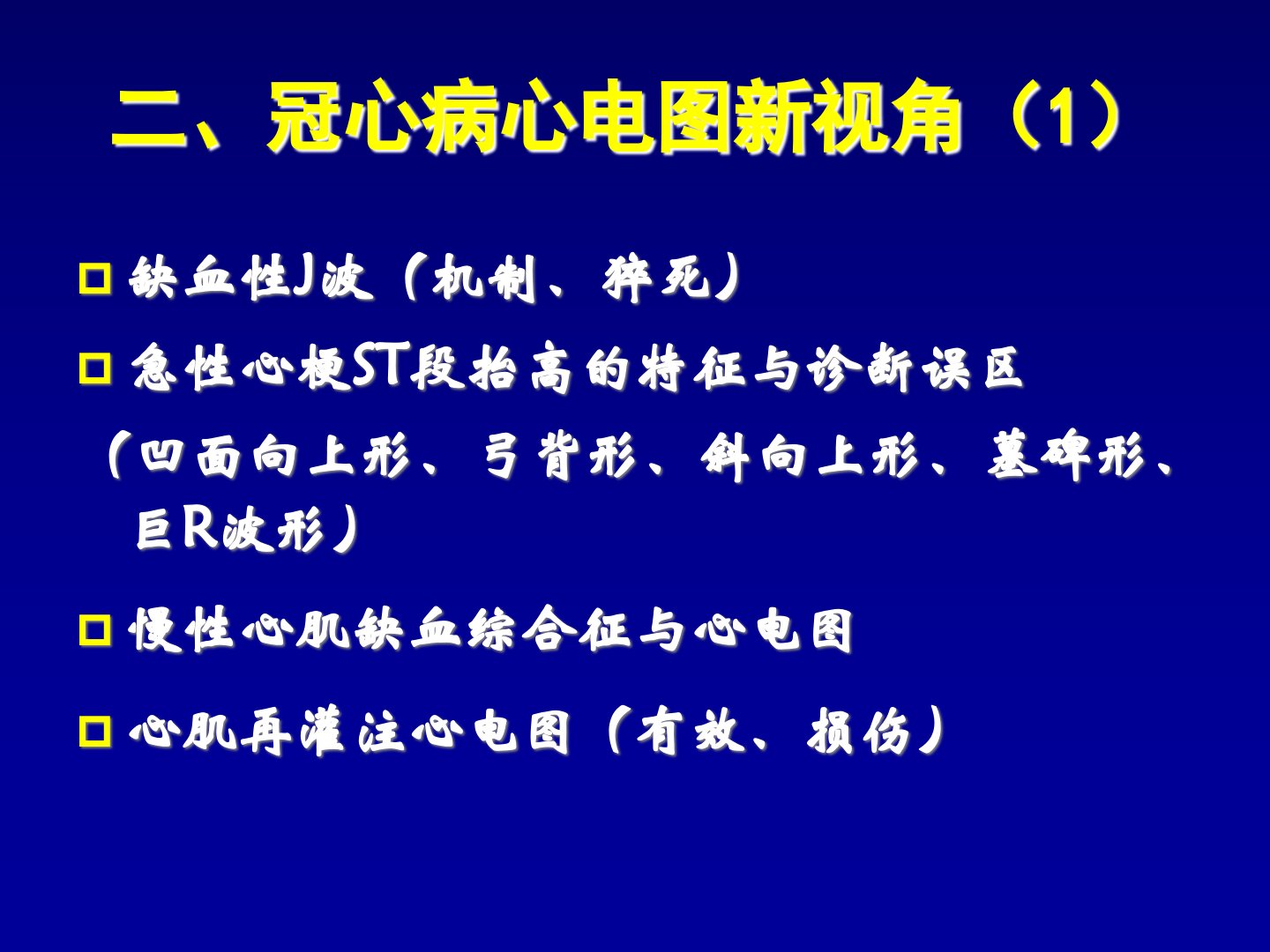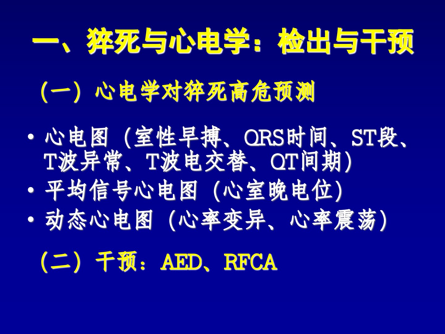 中国心电学论坛2007聚焦心电学在猝死预测与冠心病管理中的应用。(一)心电学对猝死高危预测包括室性早搏、QRS时间、ST段、T波异常等指标以及平均信号心电图、动态心电图等检测手段干预措施则包括AED、RFCA等。(二)论坛探讨了冠心病心电图的新视角如缺血性J波(与急性心肌缺血相关预示心电不稳定及室速室颤风险)、急性心梗ST段抬高的特征与诊断误区以及心肌再灌注心电图等。同时涉及急性冠脉综合征指南中心电图的规范化解读、左主干病变心电图诊断等内容。首都医科大学附属北京朝阳医院杨新春指出影响AMI预后的因素包括梗死面积、恶性室性心律失常可能性等并强调了室颤作为冠心病患者猝死的最常见原因目前尚无确切方法预测其发生但某些心电图征象可预示猝死风险。